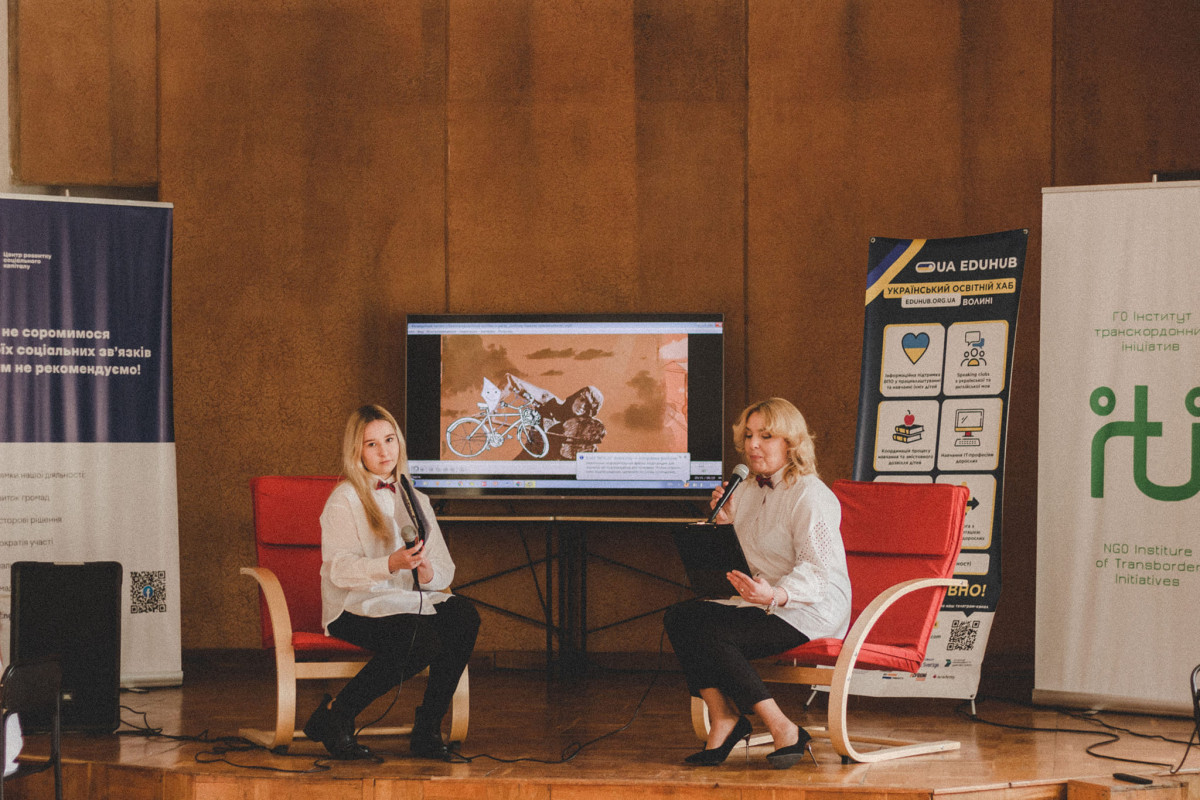 Директорка бібліотеки Алла Єфремова висловила захоплення від майстерності художниці та закликала присутніх на зустрічі студентів Луцького педагогічного коледжу презентувати свої здібності та розвивати таланти дітей, щоб показати Україну і на світовому рівні, підкресливши її унікальність і неповторність.
