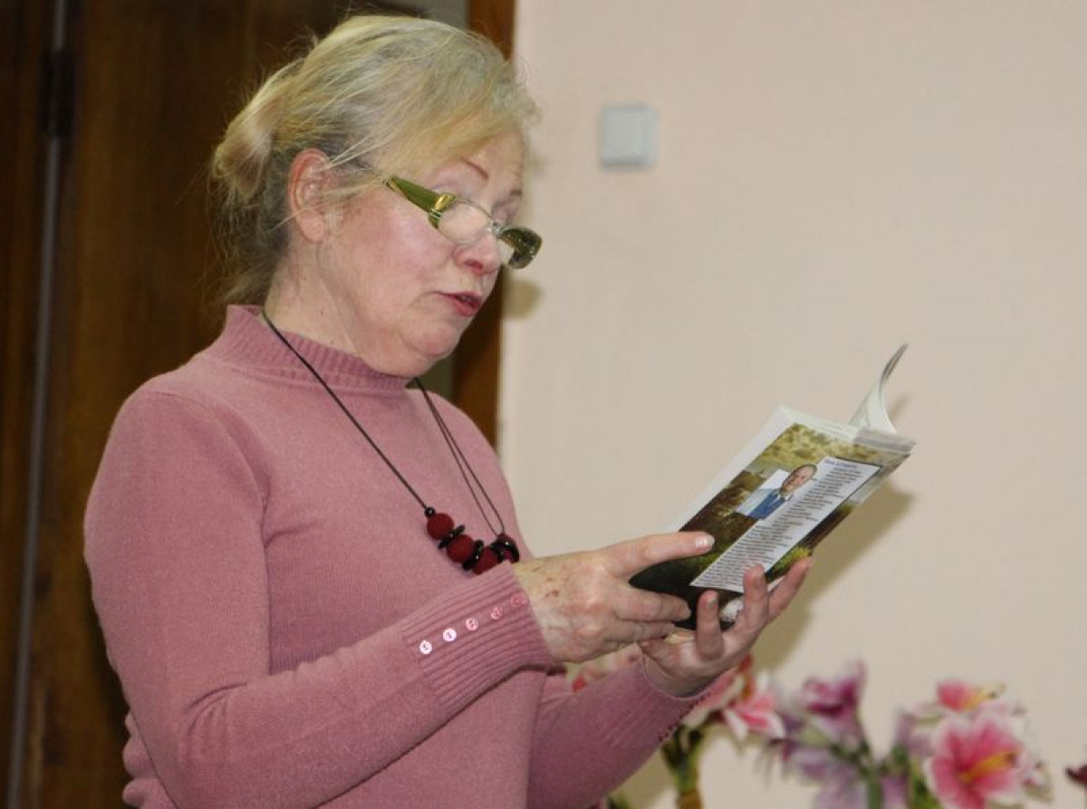 Всі присутні мали можливість оглянути книжкову виставку „Гаряче і щире слово Євгена Хотимчука”, яка включала твори письменника, публікації про його творчий ужинок.