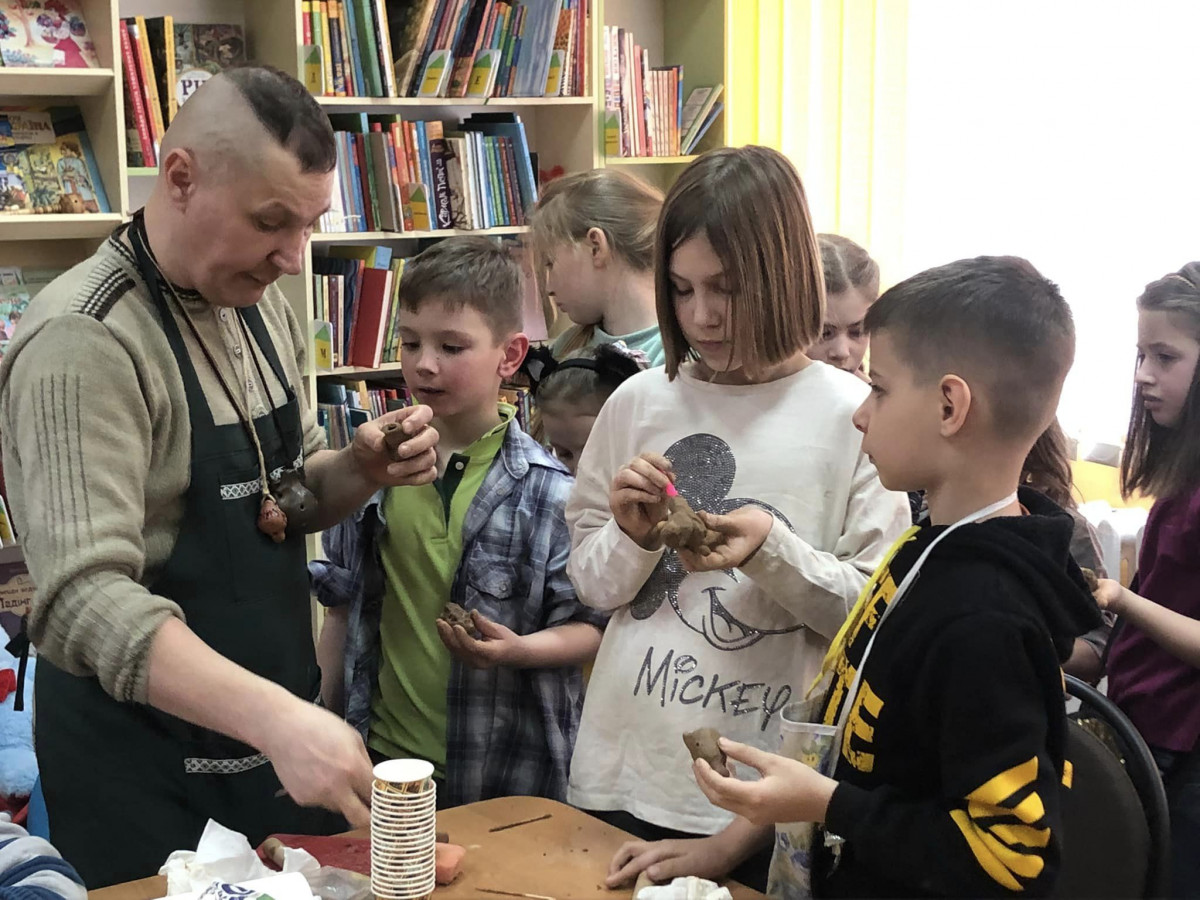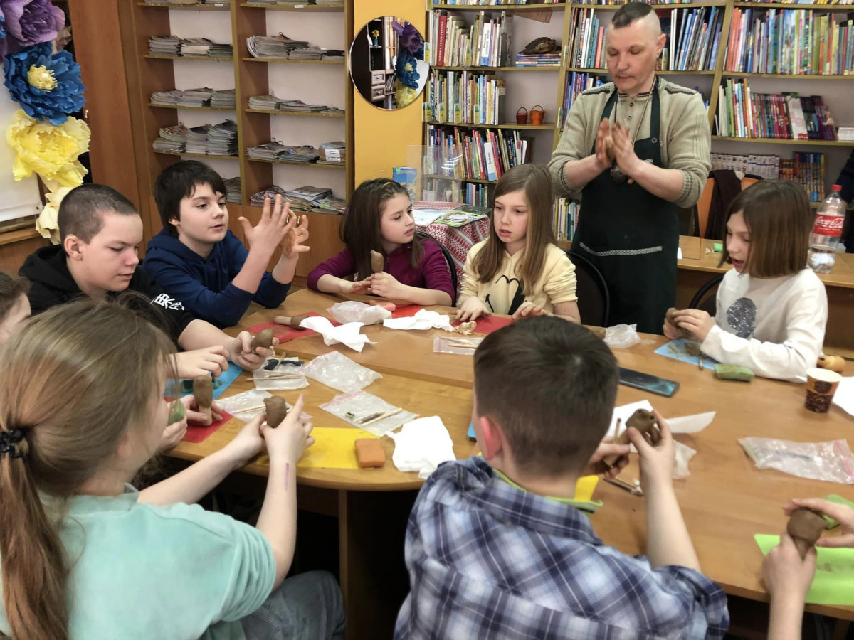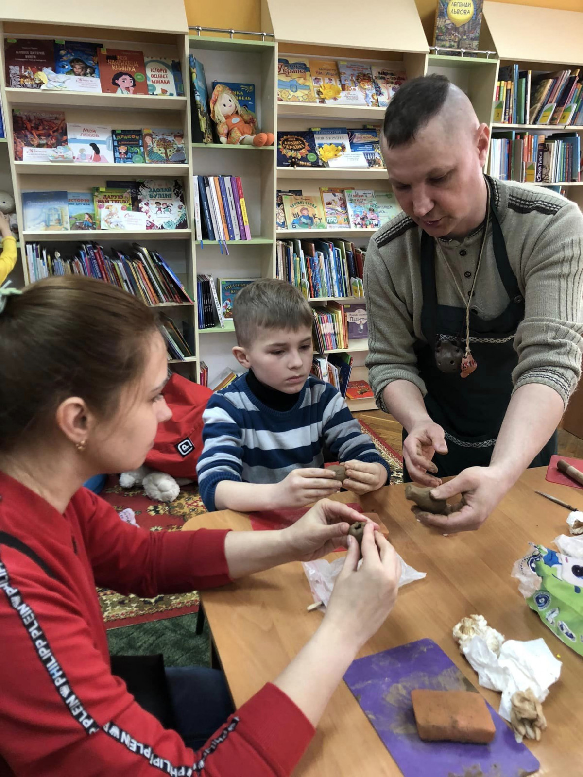 Давній друг бібліотеки – відомий гончар Анатолій Філозоф, вигравав на глиняних свищиках різні мелодії-голоси птахів, які діти залюбки підхоплювали. На завершення гутірки Анатолій Філозоф провів майстер-клас із виготовлення пташечок-свищиків.