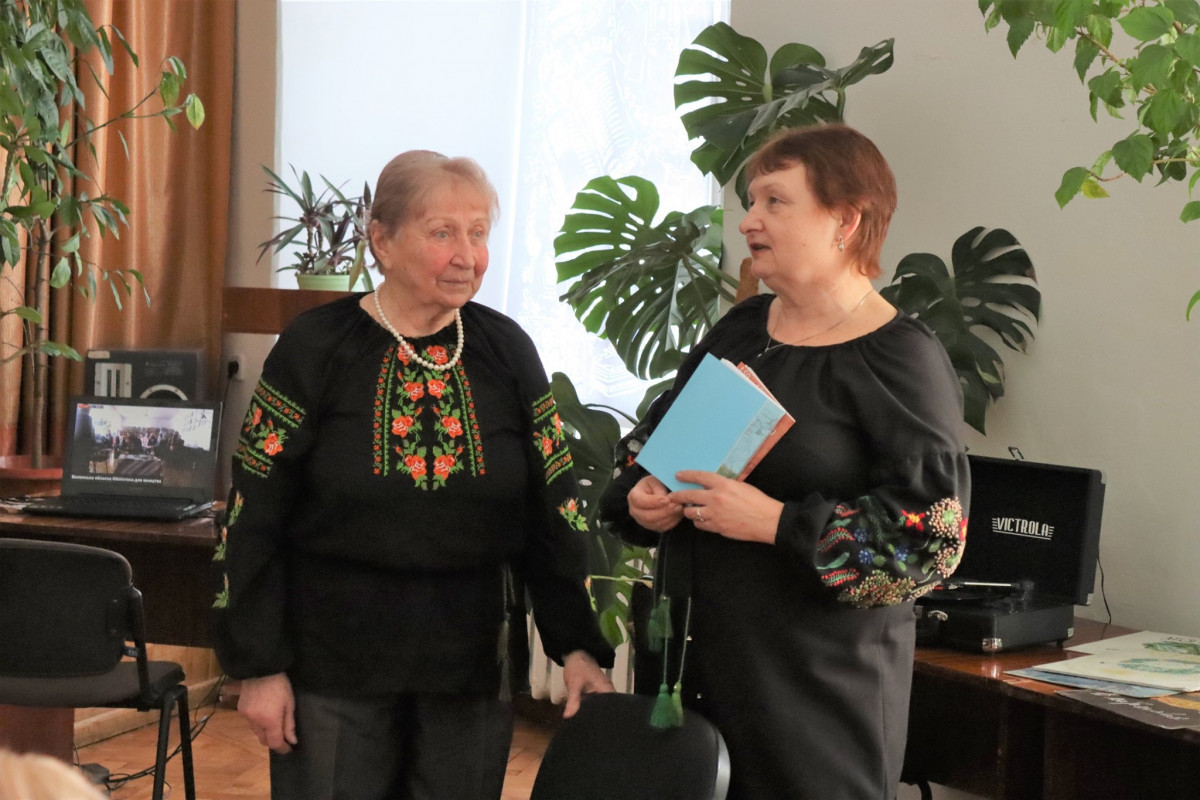 Заслужений працівник культури України, почесний краєзнавець України, кавалер ордену Княгині Ольги II ступеня, лауреатка обласної премії ім. М. Куделі, людина – чарівна, чесна в професії і в житті, – так представила гостю модераторка заходу завідувачка відділу краєзнавства Віра Кумановська.