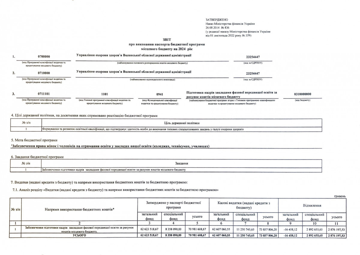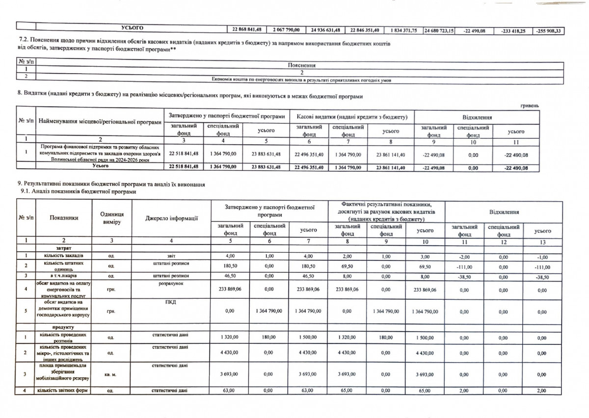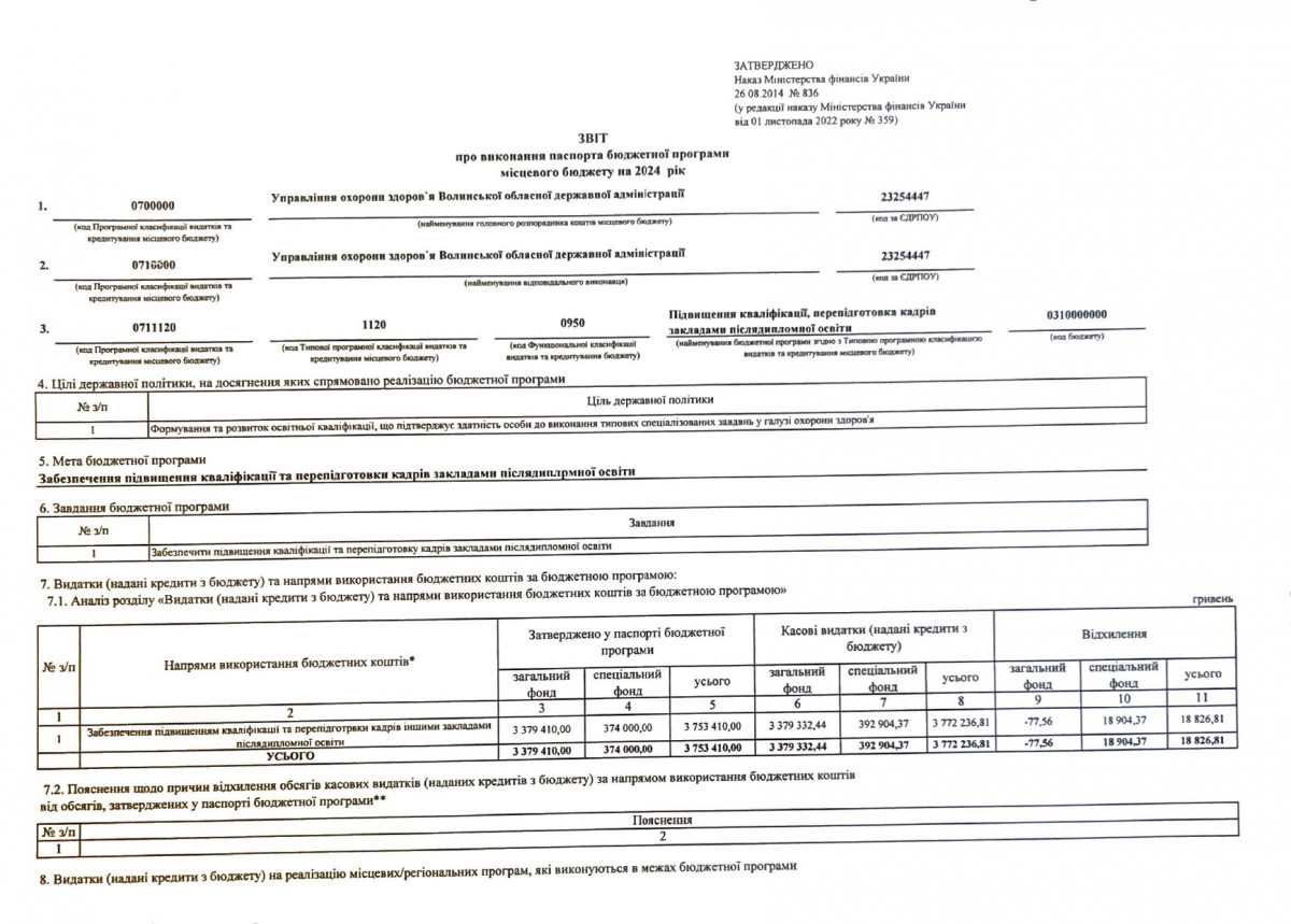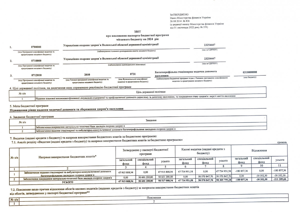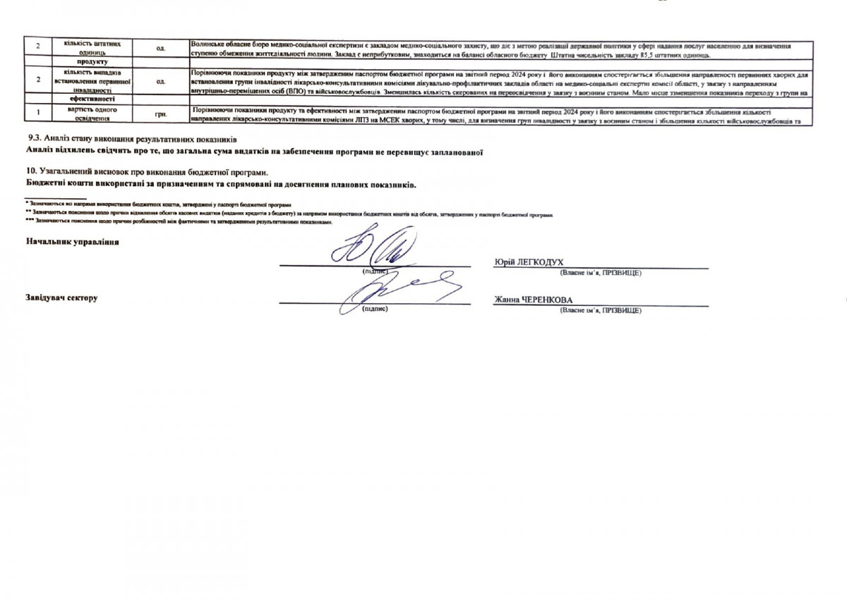 Бюджетний запит Волинської обласної державної адміністрації на 2024 рік за бюджетною програмою 7731010 «Здійснення виконавчої влади у Волинській області»
