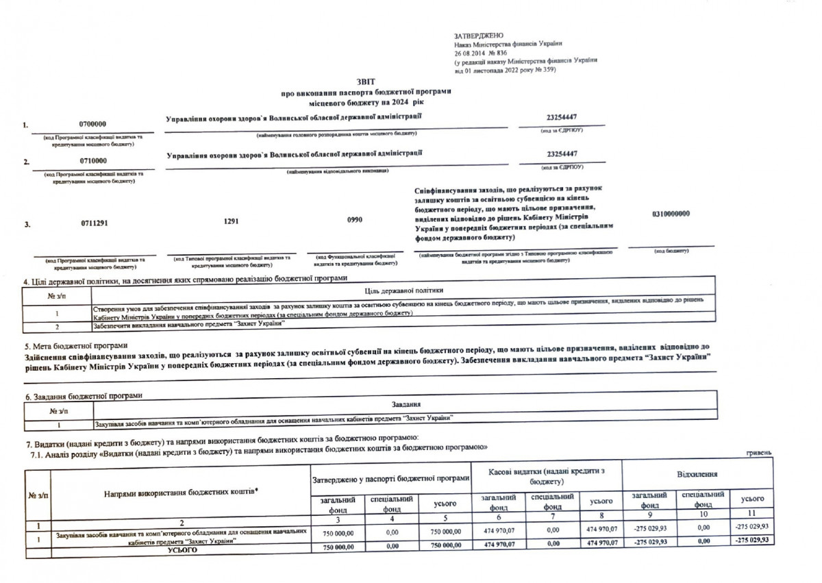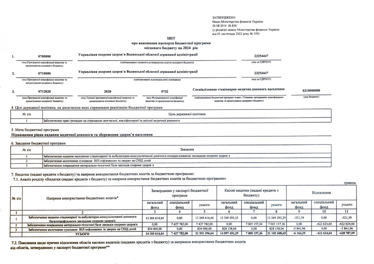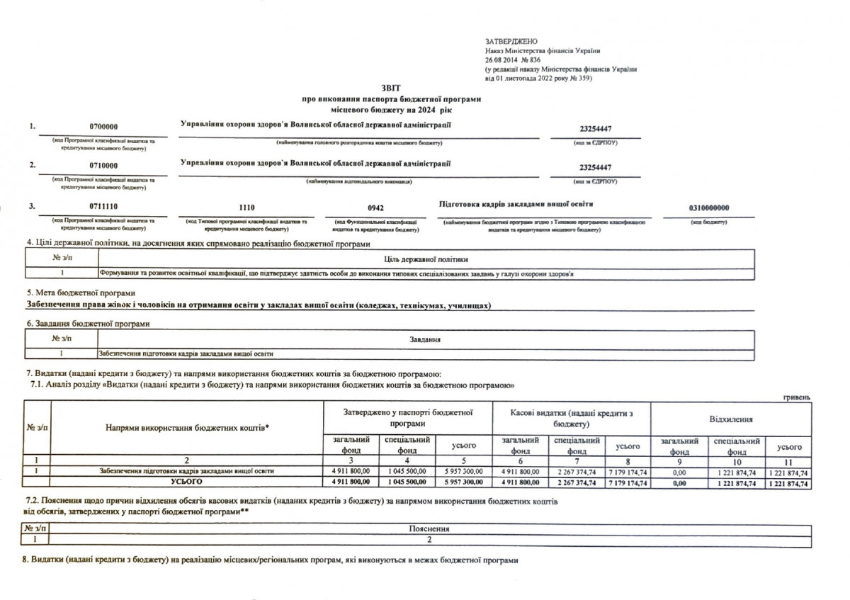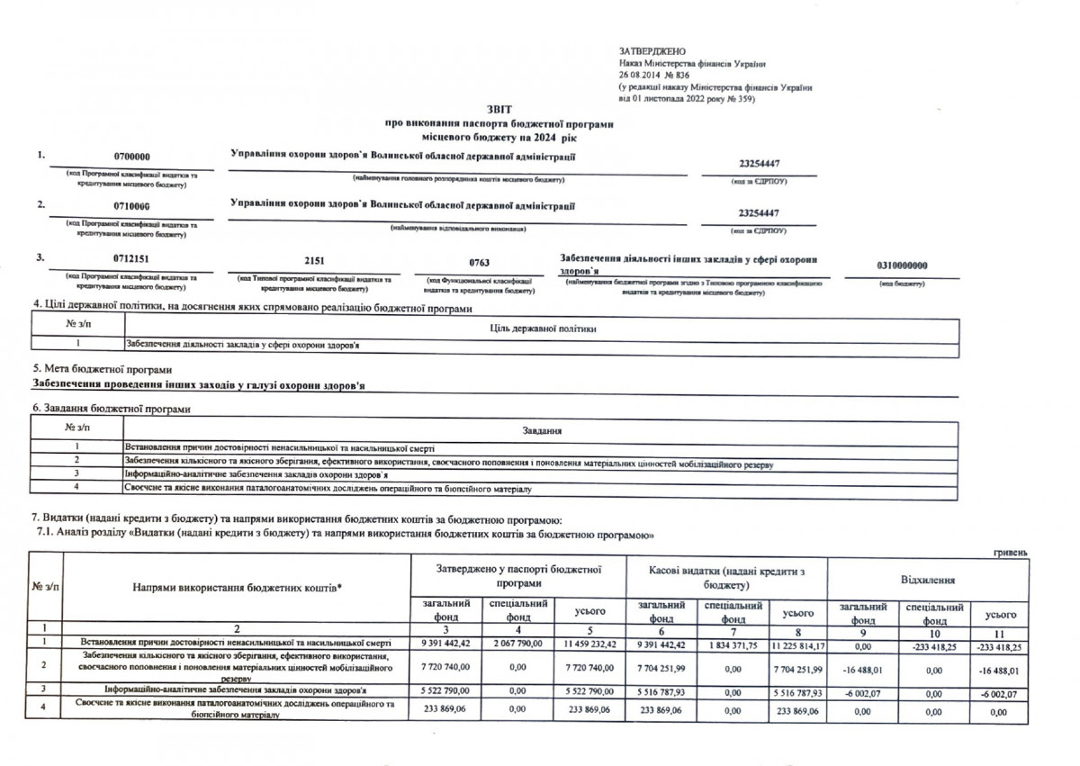 Бюджетний запит Волинської обласної державної адміністрації на 2024 рік за бюджетною програмою 7731010 «Здійснення виконавчої влади у Волинській області»