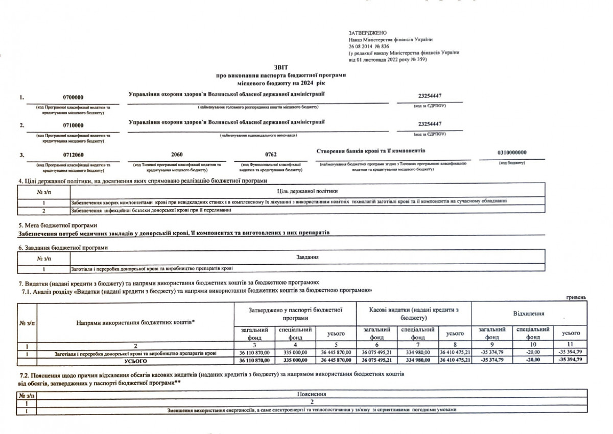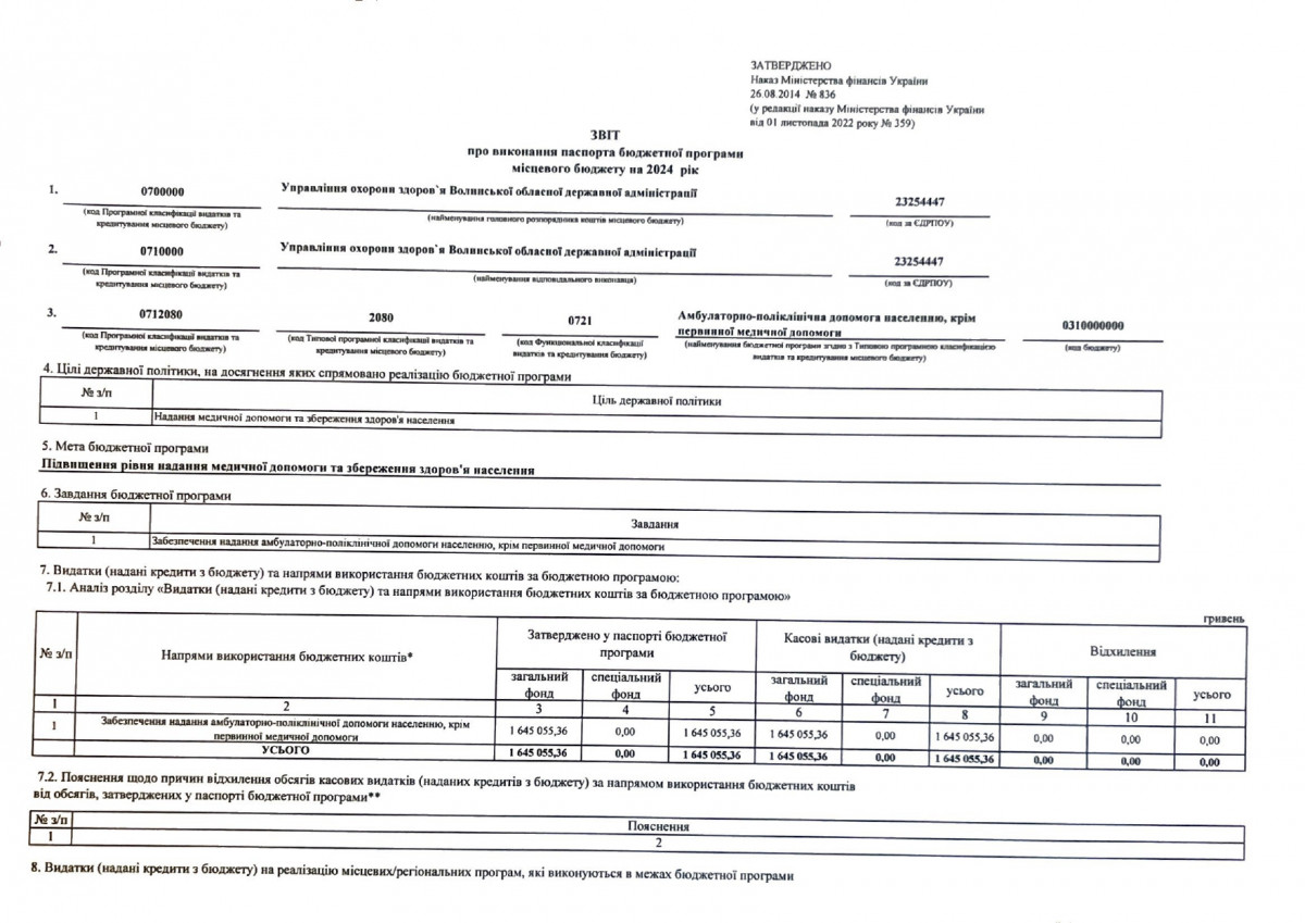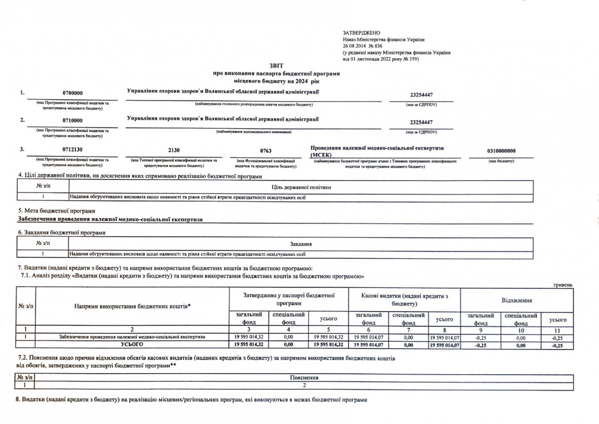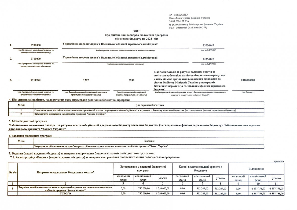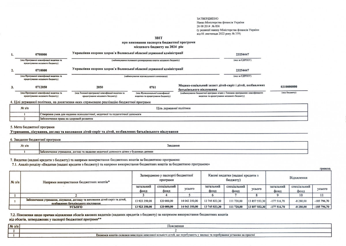 Бюджетний запит Волинської обласної державної адміністрації на 2024 рік за бюджетною програмою 7731010 «Здійснення виконавчої влади у Волинській області»