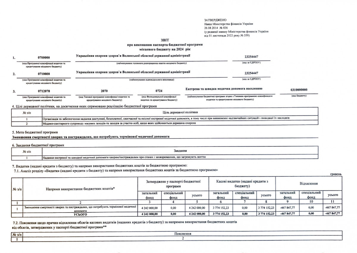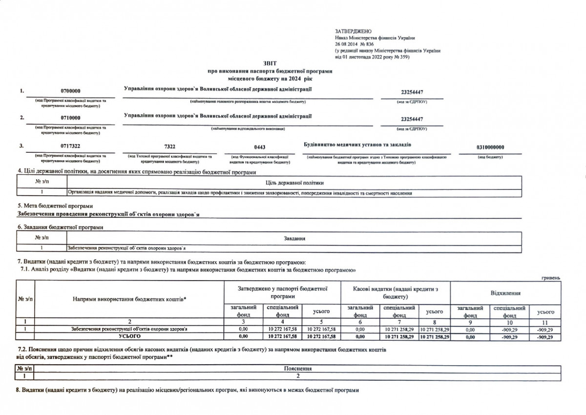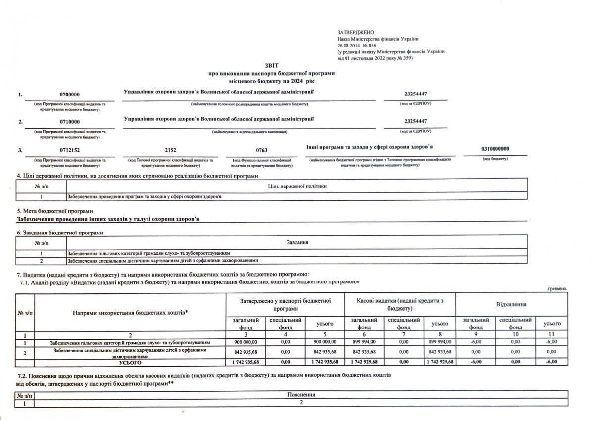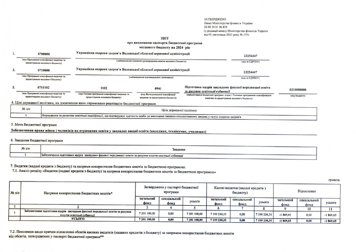 Паспорт бюджетної програми 7731010 «Здійснення виконавчої влади у Волинській області» на 2022 рік