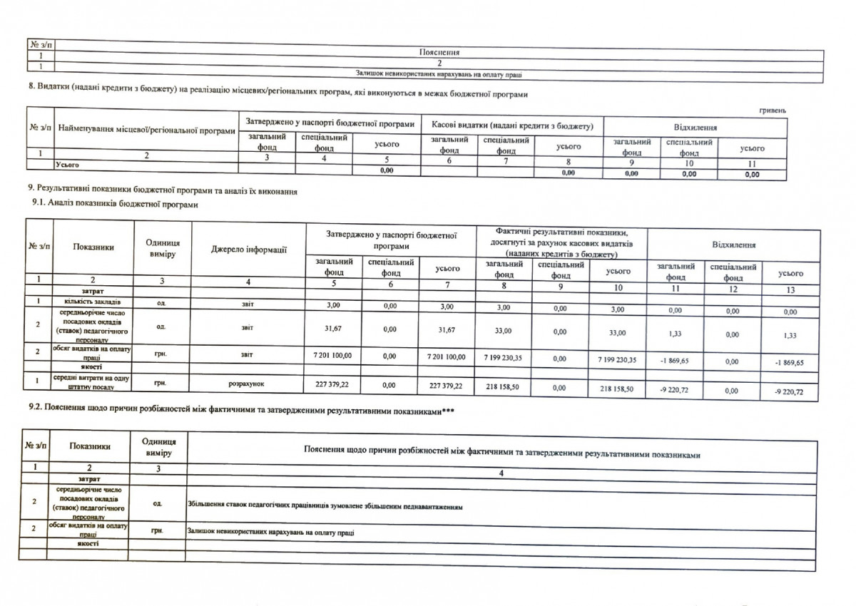 Звіт про виконання паспорта бюджетної програми на 2021 рік