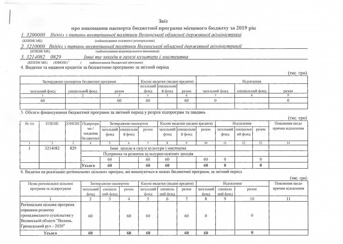 17 березня 2019, 11:44 останні оновлення: 23 червня 2020 Звіт про виконання паспорта бюджетної програми місцевого бюджету за 2019 рік