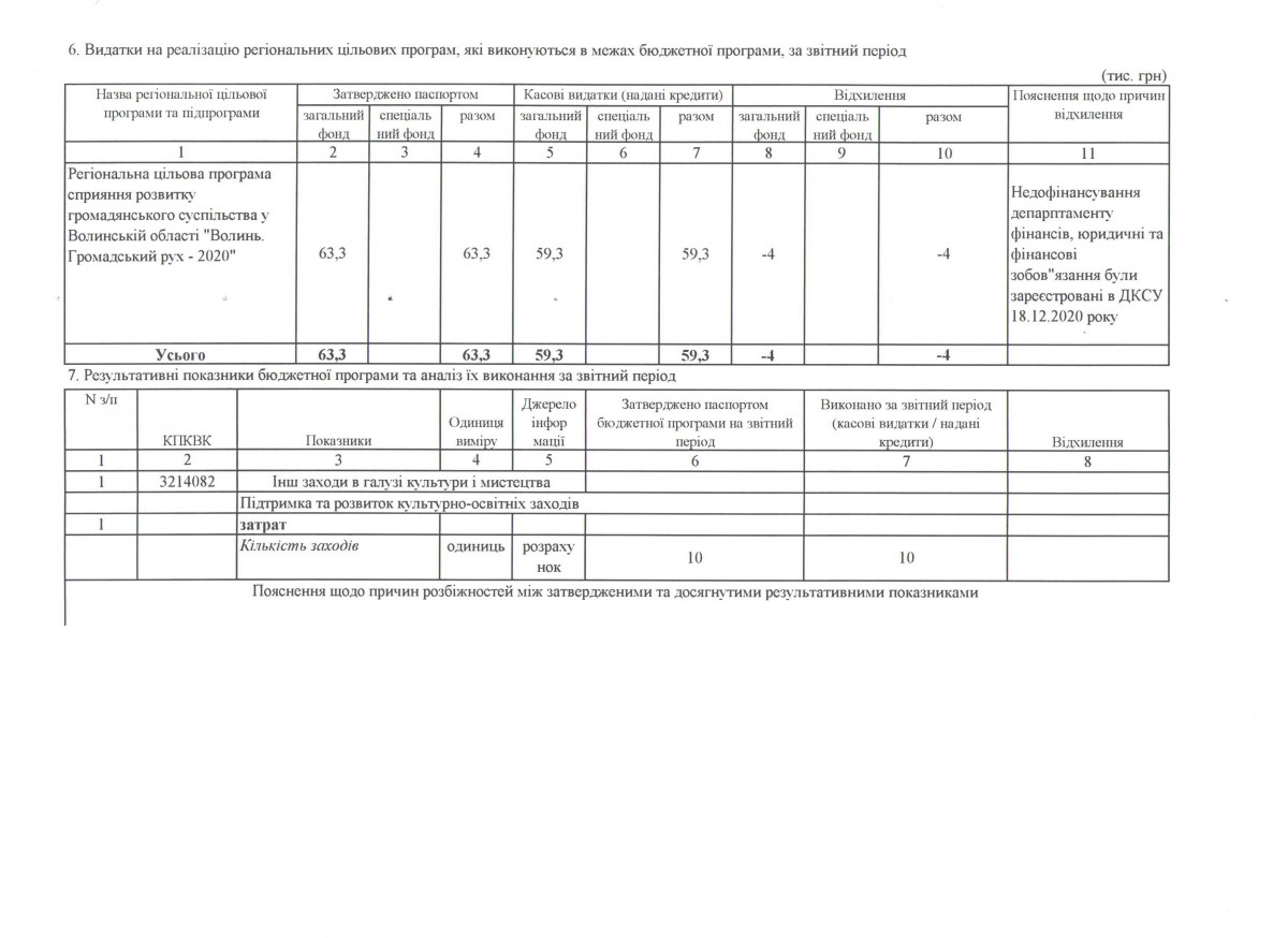 25 січня 2021, 10:24 останні оновлення: 08 квітня 2021 Звіт про виконання паспорта бюджетної програми місцевого бюджету за 2020 рік