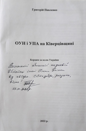 Книга Григорія Павленка «ОУН і УПА на Ківерцівщині» – у фондах Волинської ДОУНБ імені Олени Пчілки