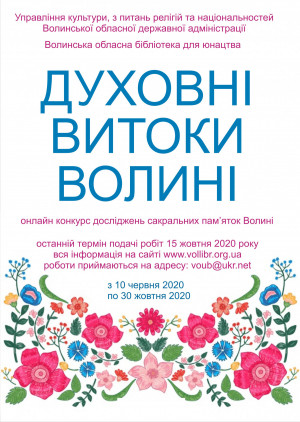 Обласний онлайн конкурс досліджень сакральних пам’яток "ДУХОВНІ ВИТОКИ ВОЛИНІ"