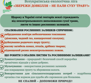 Збережи довкілля- не пали суху траву