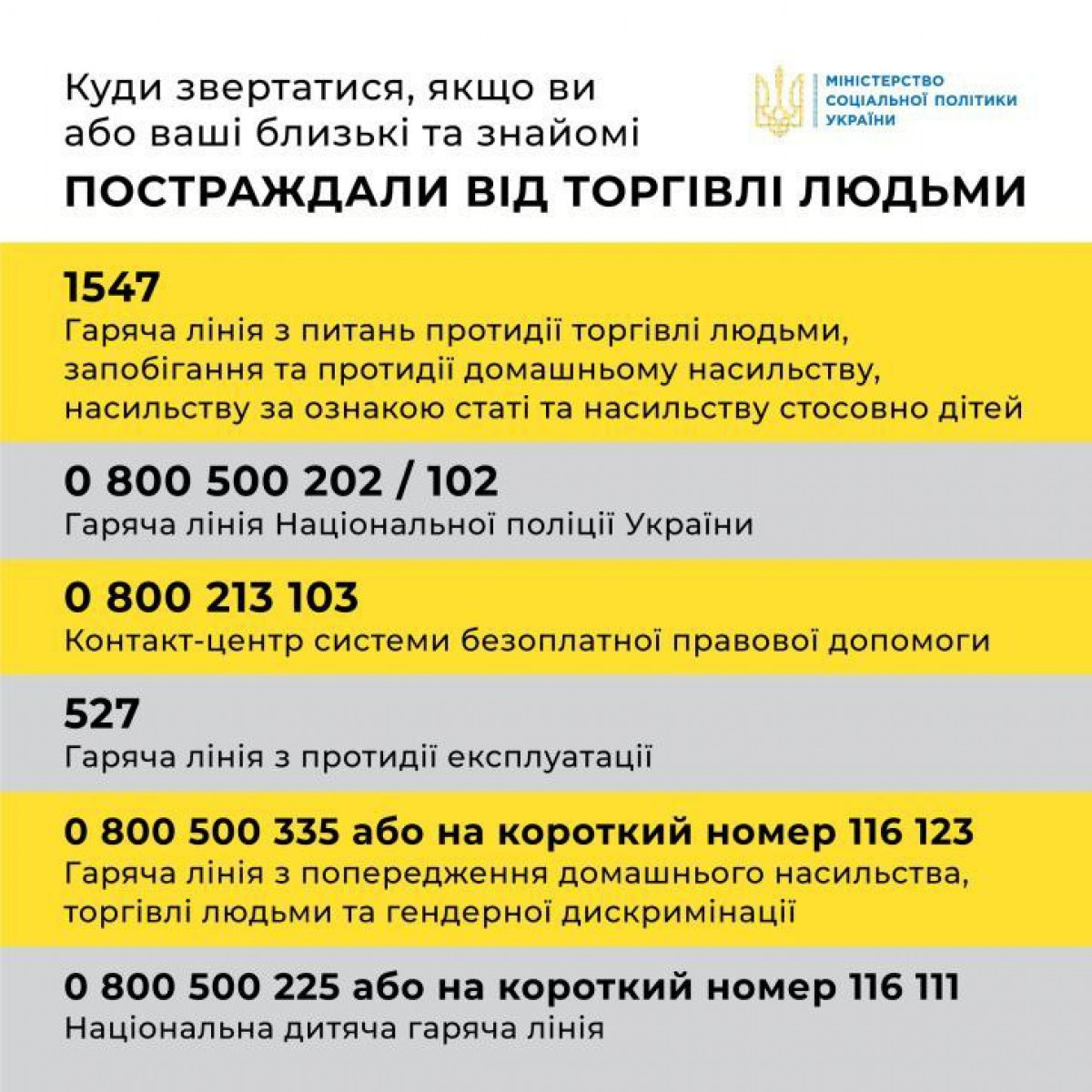 Пам’ятайте, в Україні працює система допомоги постраждалим особам. Для отримання інформації або додаткових консультацій звертайтеся: