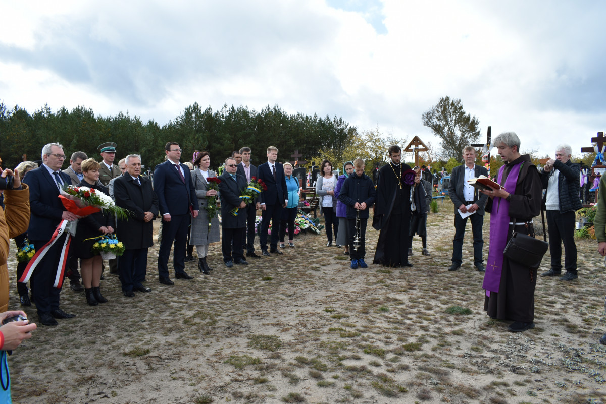 Перш за все, усі зібралися біля пам’ятного знаку на місцевому кладовищі, де представники духовенства польської та української сторони відслужили панахиду за загиблими, після якої польські дипломати, керівництво області та громадськість поклали квіти до місця, де спочивають 18 офіцерів польського війська.