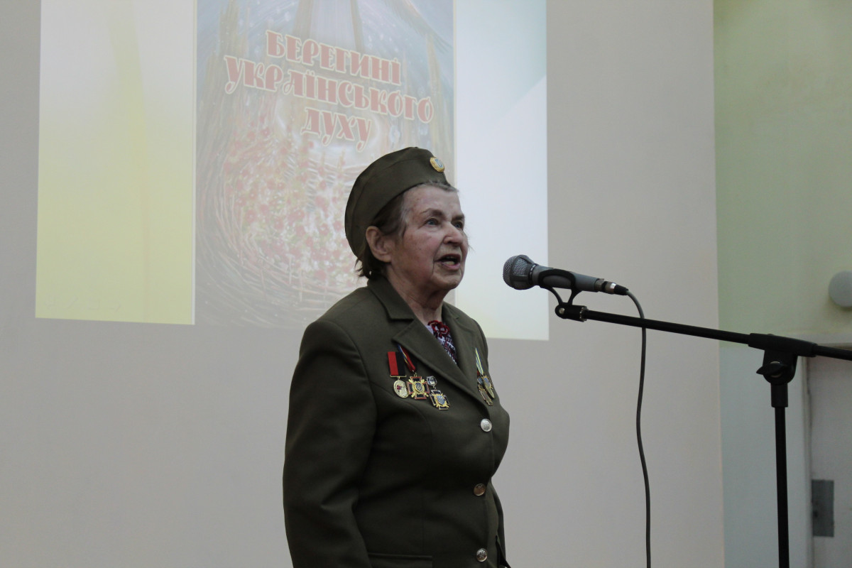Слід зауважити, що у залі була присутня володарка ордена Княгині Ольги ІІІ ступеня Марія Ткачук – жінка, яка за зв’язки із збройним підпіллям пройшла арешти, суди, голод, пережила 18 років сибірської каторги. Сьогодні вона, станична Братства ОУН-УПА Волинського краю імені Клима Савура, продовжує вірити у майбутнє України. Тож зустрілася із молоддю та прочитала їм вірші.