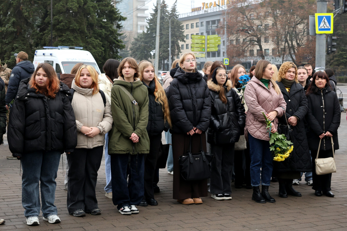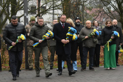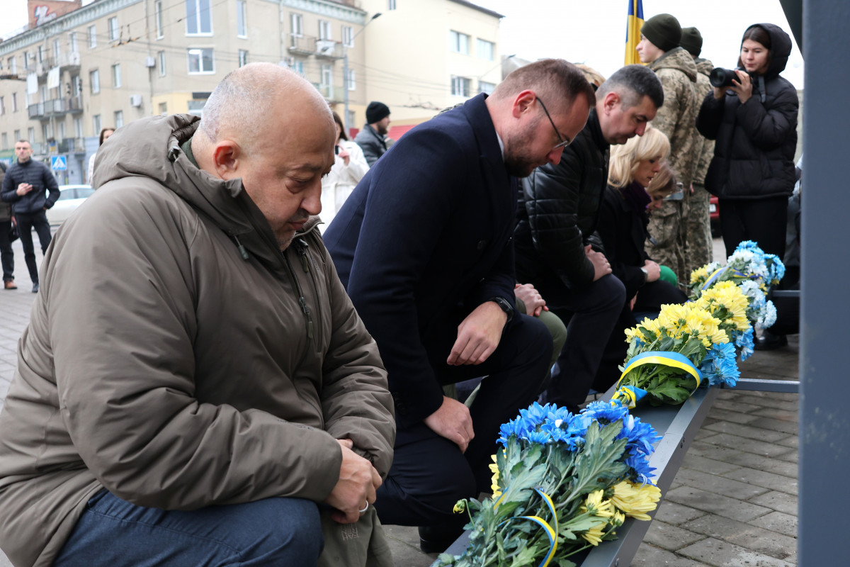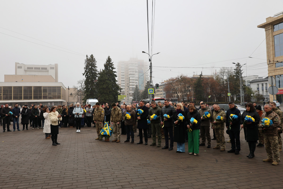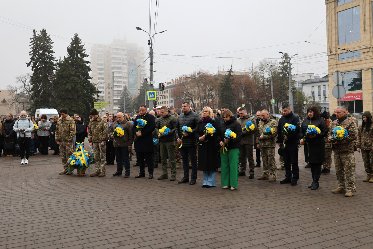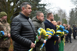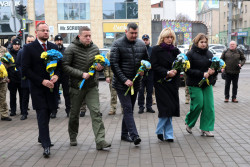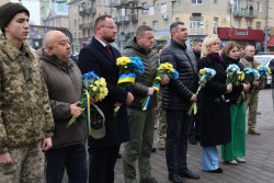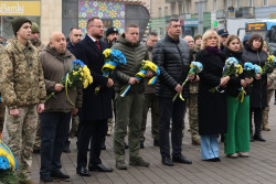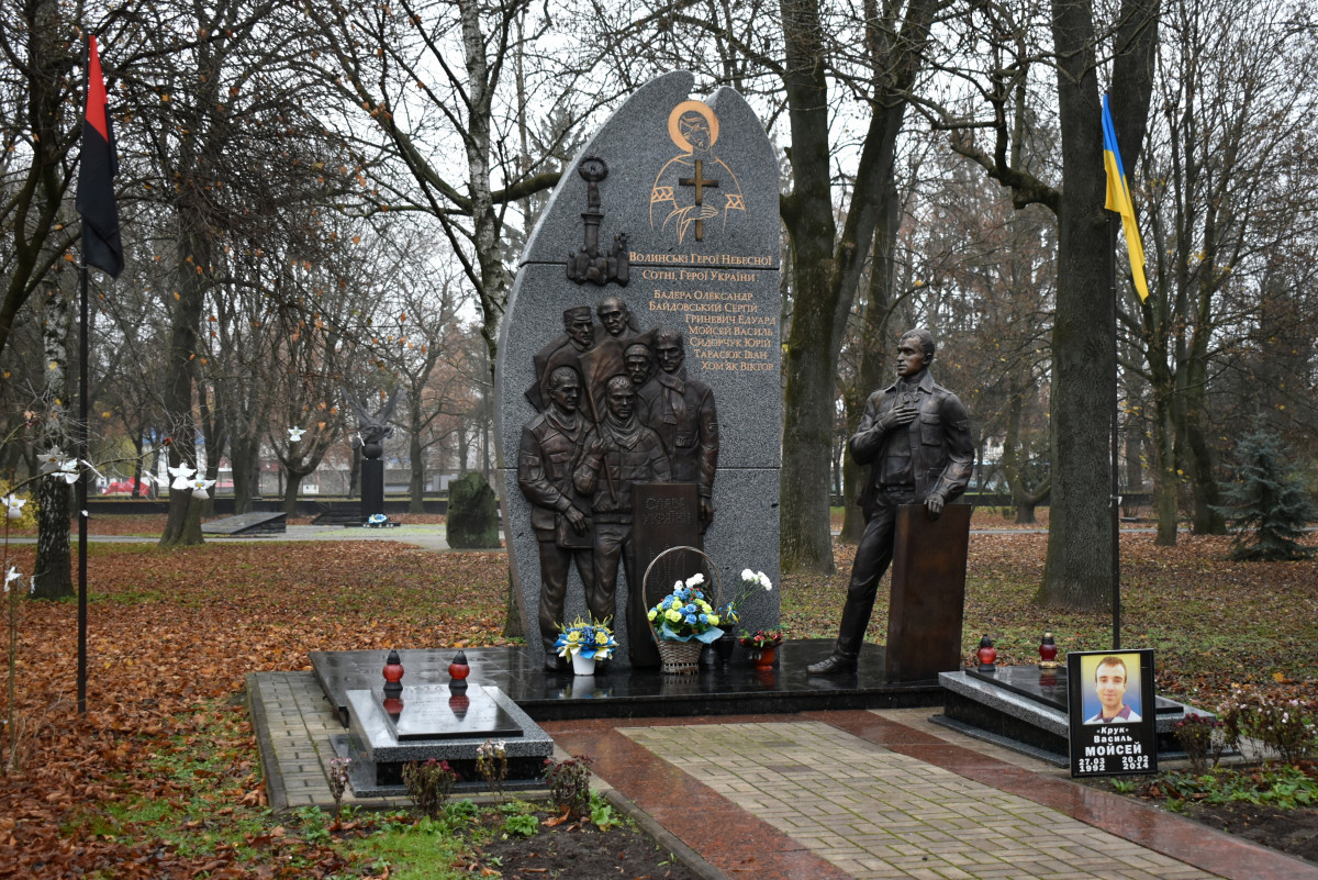 Сьогодні в обласному центрі Волині відбулась церемонія вшанування пам’яті. Начальник ОВА Іван Рудницький спільно з родинами, військовослужбовцями, духовенством і керівниками обласних структур схили голови у спільній хвилині мовчання перед фотостендом «Герої Небесної Сотні» та біля пам’ятника «Волинські Герої Небесної Сотні» на могилі Василя Мойсея. Квіти, покладені до підніжжя стели, завжди становлять контраст між гранітом і тендітністю пелюсток. Як символ крихкості життя і водночас твердості ідеї, за яку варто боротись.
