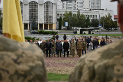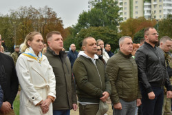 До заходу долучилися військові, представники державних установ, силових структур та духовенство. Серед присутніх: начальник обласної військової адміністрації Юрій Погуляйко, його заступники Олександр Троханенко, Тарас Шкітер та Вікторія Левчук, очільник Луцької громади Ігор Поліщук, а також перший заступник голови облради Юрій Поліщук.