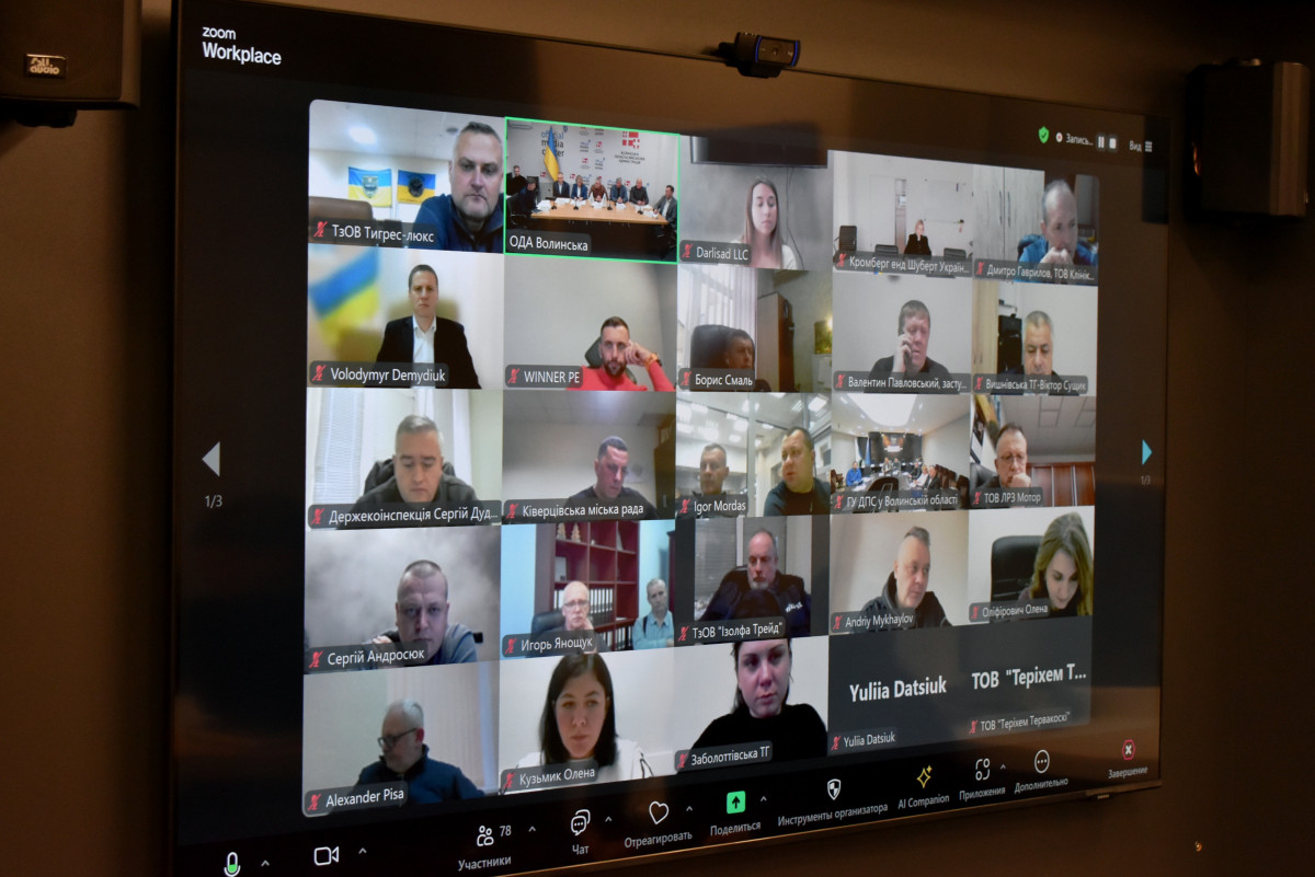 Більше 80 представників підприємств Волині взяли участь в онлайн-зустрічі з керівництвом області та директорами компаній, що надають послуги газорозподілу та електричної енергії. Модерував зустрів заступник голови облдержадміністрації Олександр Троханенко.