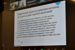 Завідувачка кафедри менеджменту ЛНТУ Наталія Вавдіюк розпочала заняття з презентації Індексу цифрової трансформації України у 2024 році від Мінцифри. За його даними, Волинська область входить у п’ятірку лідерів із впровадження цифровізації в регіонах.