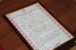 Дівчинка засоромилася, тож лише скромно подякувала за подарунок. Її батько, Мирослав Столярчук, був бійцем роти "Світязь" та загинув у 2014 році під Іловайськом.