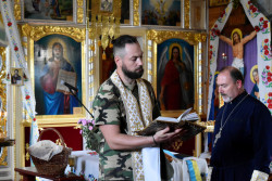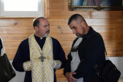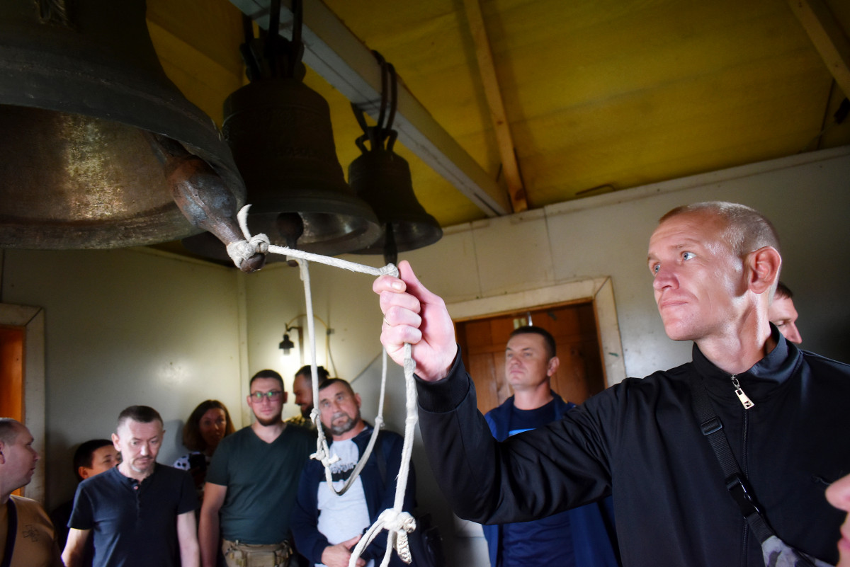 – Неприродньо людині помирати від кулі, а природньо від глибокої старості. Але ворог не питає і не дає вибору. Нехай небесними ангелами та воїнами стоять полеглі пліч-о-пліч з нами, а вам, скаліченим війною, Господь поверне здоров'я, віру та надію, – провадить отець Володимир, та після спільної молитви запрошує всіх на дзвіницю.