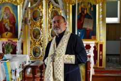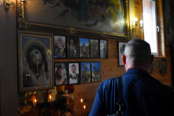 Міцно стискає руки мовчазний Петро. На стіні храму серед портретів полеглих захисників він упізнав обличчя товариша. Ігор Столярук загинув у 2022 році під Соледаром, прикривши собою двох побратимів від ворожого обстрілу. Вічна пам'ять герою.