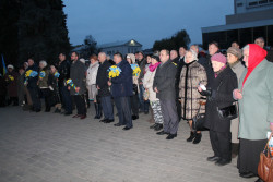 В центрі Луцька відбувся скорботний захід «Герої не вмирають» біля пам’ятного фотостенду «Герої Небесної Сотні – Загинули за Єдність України». Присутні вшанували загиблих, поклали квіти та лампадки до портретів героїв.