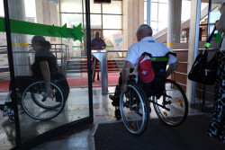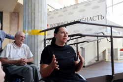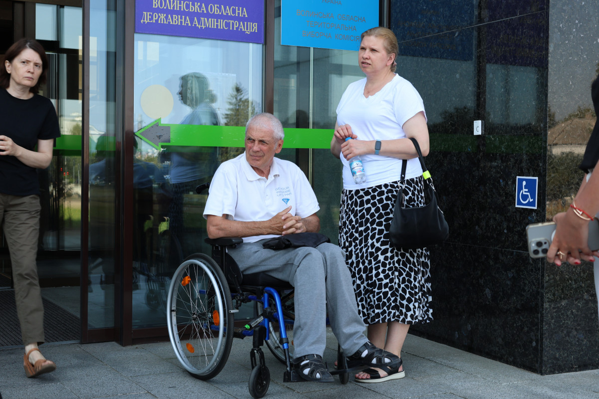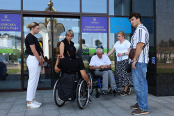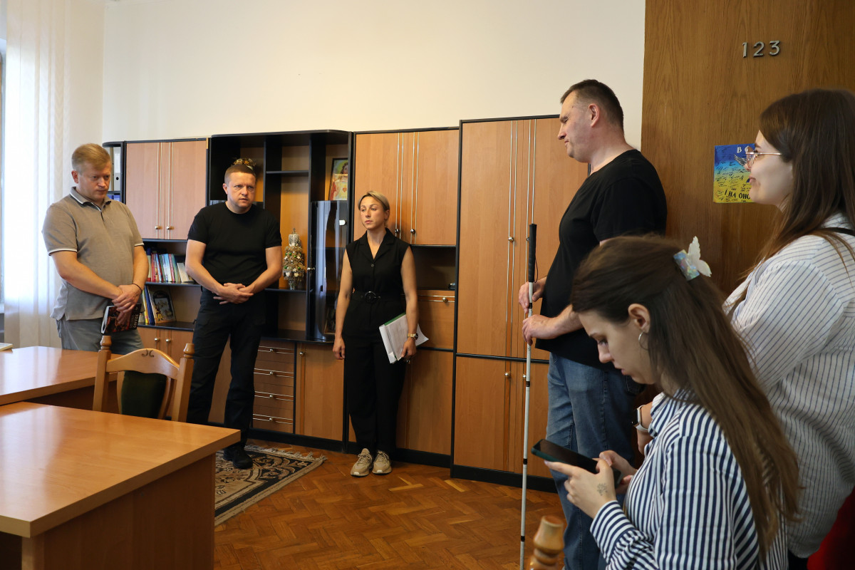 Тож під час перевірки тестували вхідну групу, пандуси, ліфти, санвузли та роботу підрозділів, які приймають громадян. Іван Зайчківський та Світлана Мартинік – люди з порушенням зору, а також Марина Мажула та Дмитро Цопко на кріслах колісних поділились своїм практичним досвідом та допомогли визначити ключові недоліки.