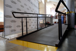 Зокрема, відсутня тактильна плитка на майданчику перед входом, сходи не мають контрастного маркування; турнікет у фойє занадто вузький для проїзду крісла колісного; санвузли та ліфти не відповідають вимогам безбар’єрності; пандус не має горизонтального продовження поручнів; на дверях бракує тактильних табличок та маркування шрифтом Брайля.