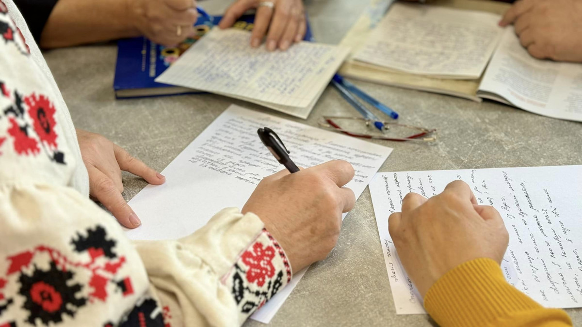 Так, жителька Поромівської громади Галина Ковальчук писала диктант в обласній лікарні на підвіконні, на зворотній стороні обгортки.