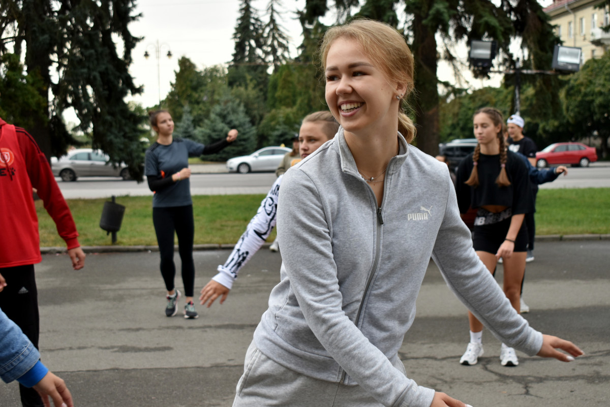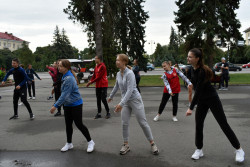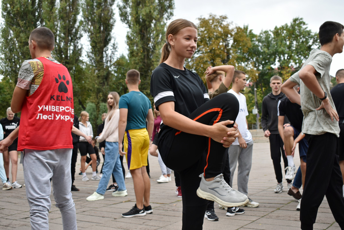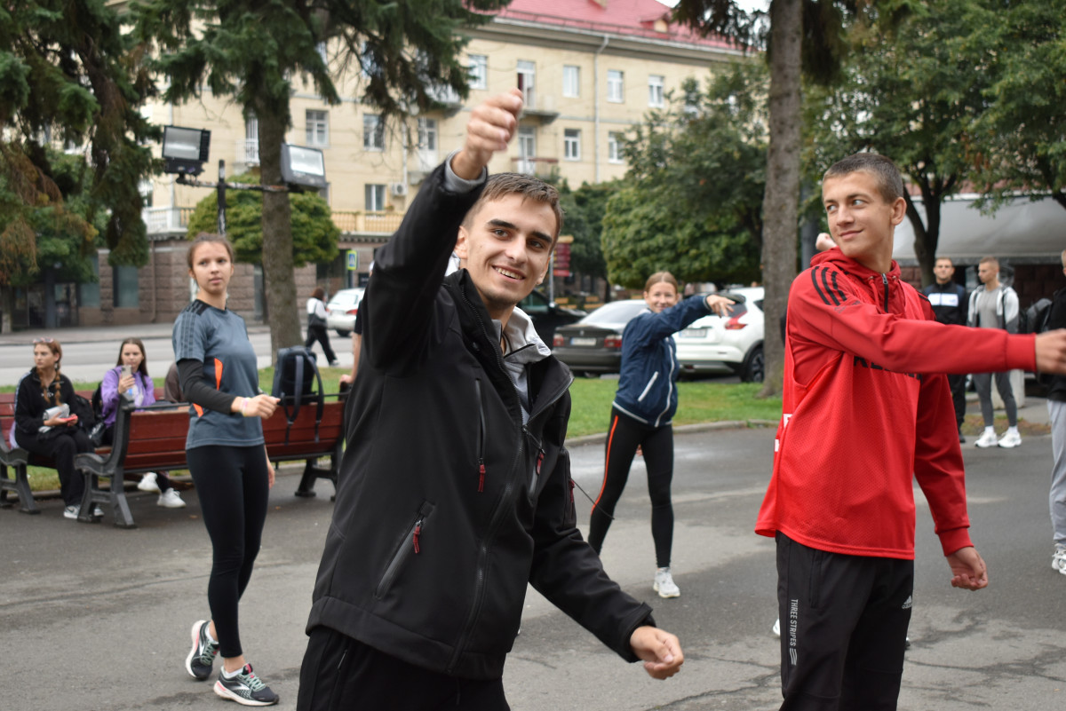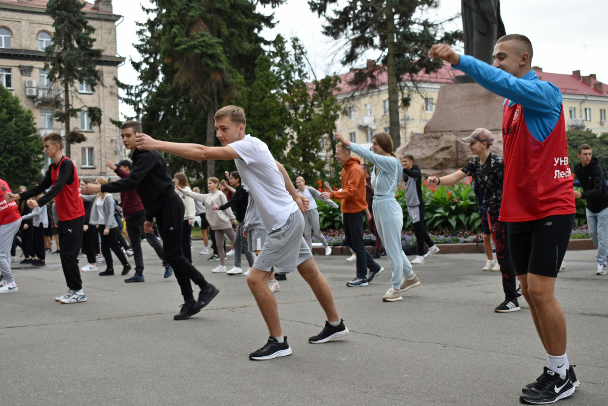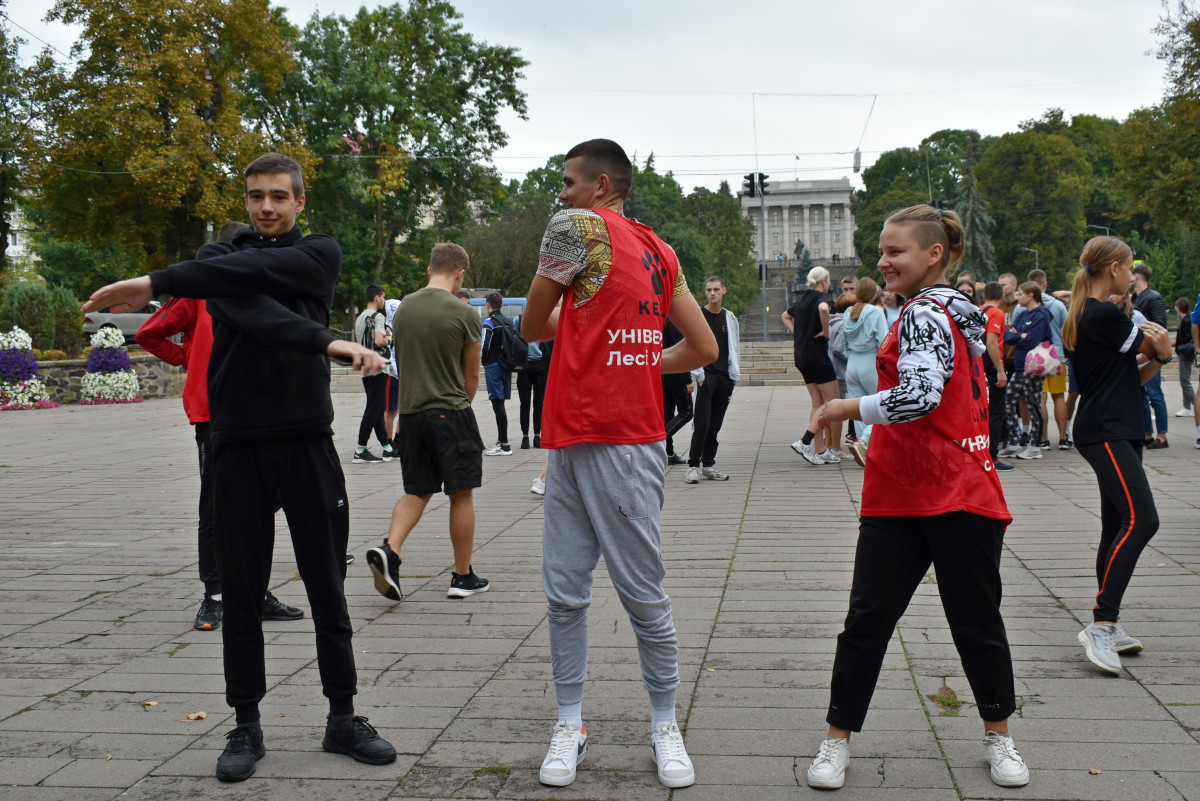 Опісля троє студенток факультету фізичної культури, спорту та здоров'я ВНУ провели масову розминку. Участь у флешмобі взяли близько 180-ти людей. Серед учасників – викладачі й здобувачі освіти різних факультетів Волинського національного університету та фахового коледжу технологій, бізнесу та права ВНУ.