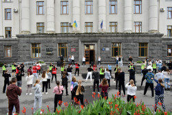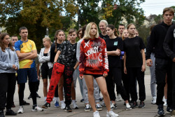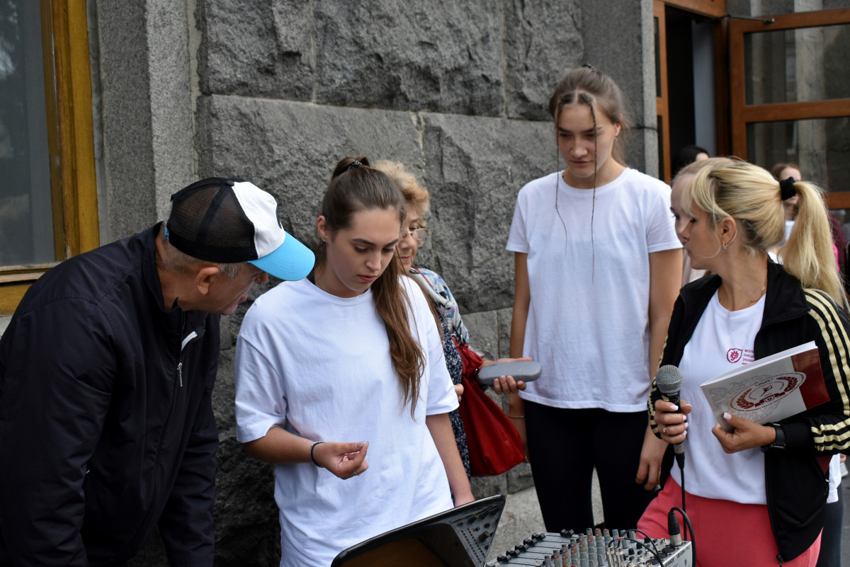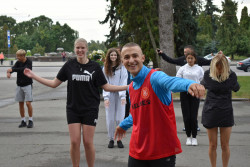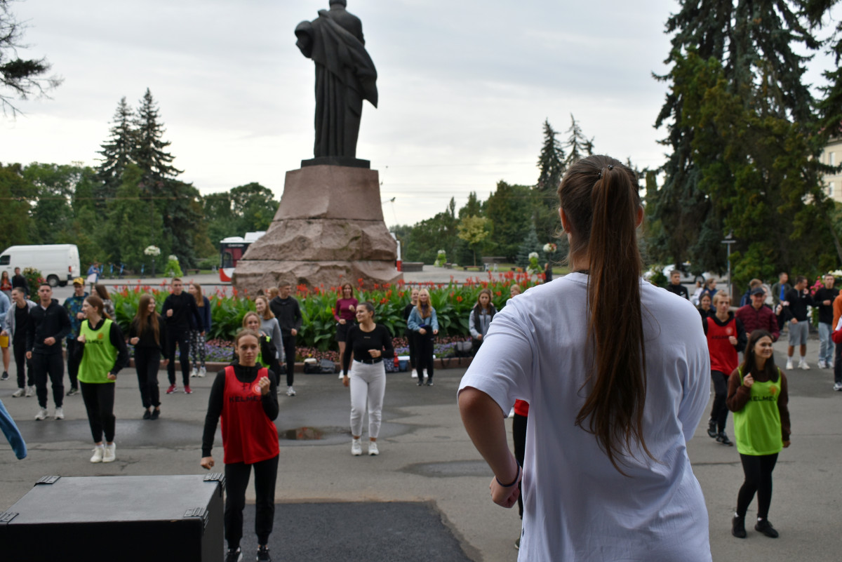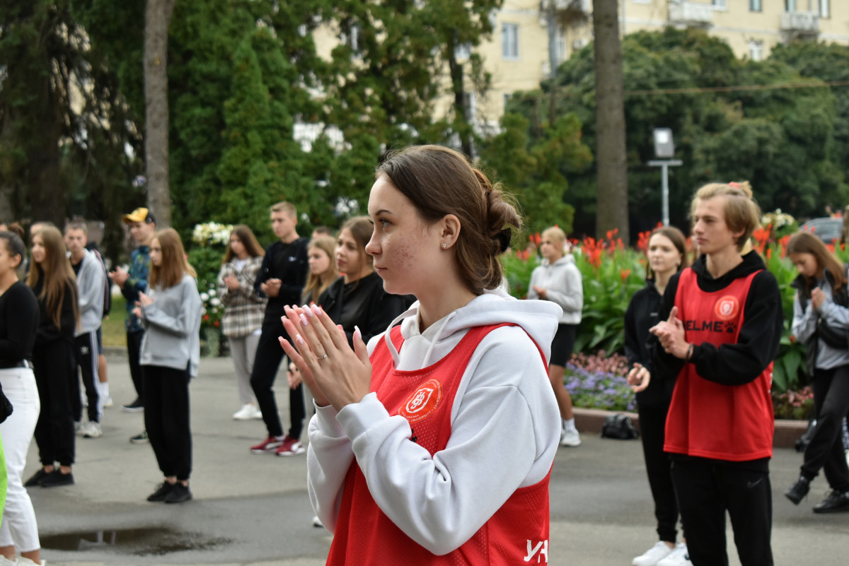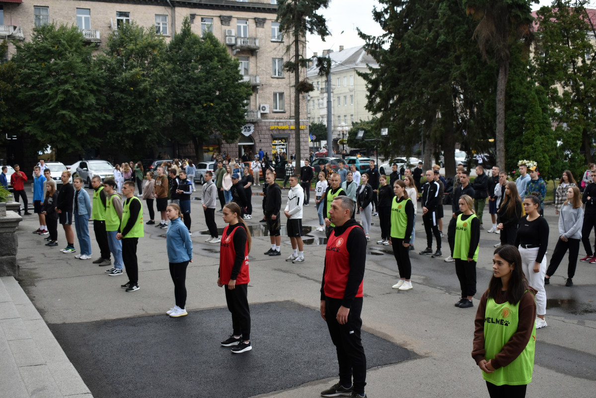 Опісля троє студенток факультету фізичної культури, спорту та здоров'я ВНУ провели масову розминку. Участь у флешмобі взяли близько 180-ти людей. Серед учасників – викладачі й здобувачі освіти різних факультетів Волинського національного університету та фахового коледжу технологій, бізнесу та права ВНУ.
