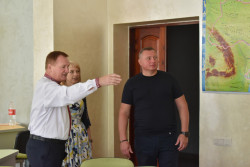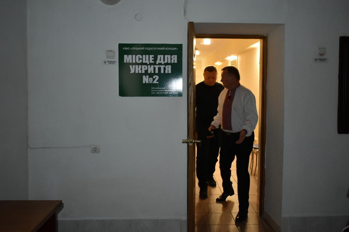 Після вітання начальник Волинської ОВА Юрій Погуляйко оглянув приміщення педколеджу, зокрема навчальні класи, освітньо-тренінгову лабораторію «Нова українська школа» та головне – облаштування укриття, адже питання безпеки залишається пріоритетним у воєнний час.