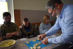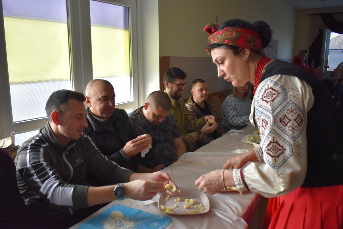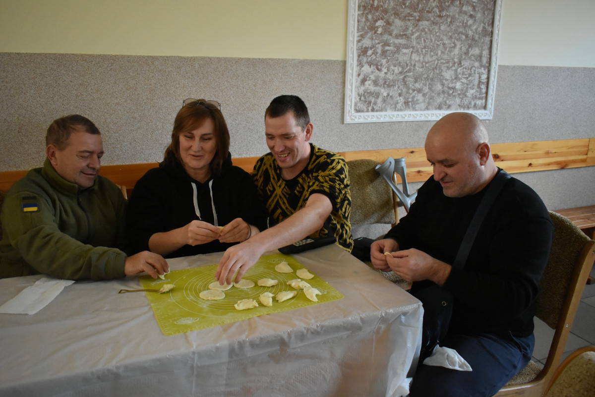Ще одним пунктом програми став майстер-класу з ліплення вареників. Поранені бійці не лише навчалися готувати традиційну українську страву, а й спільно проводили час – ліпили, сміялися та ділилися гарним настроєм.