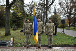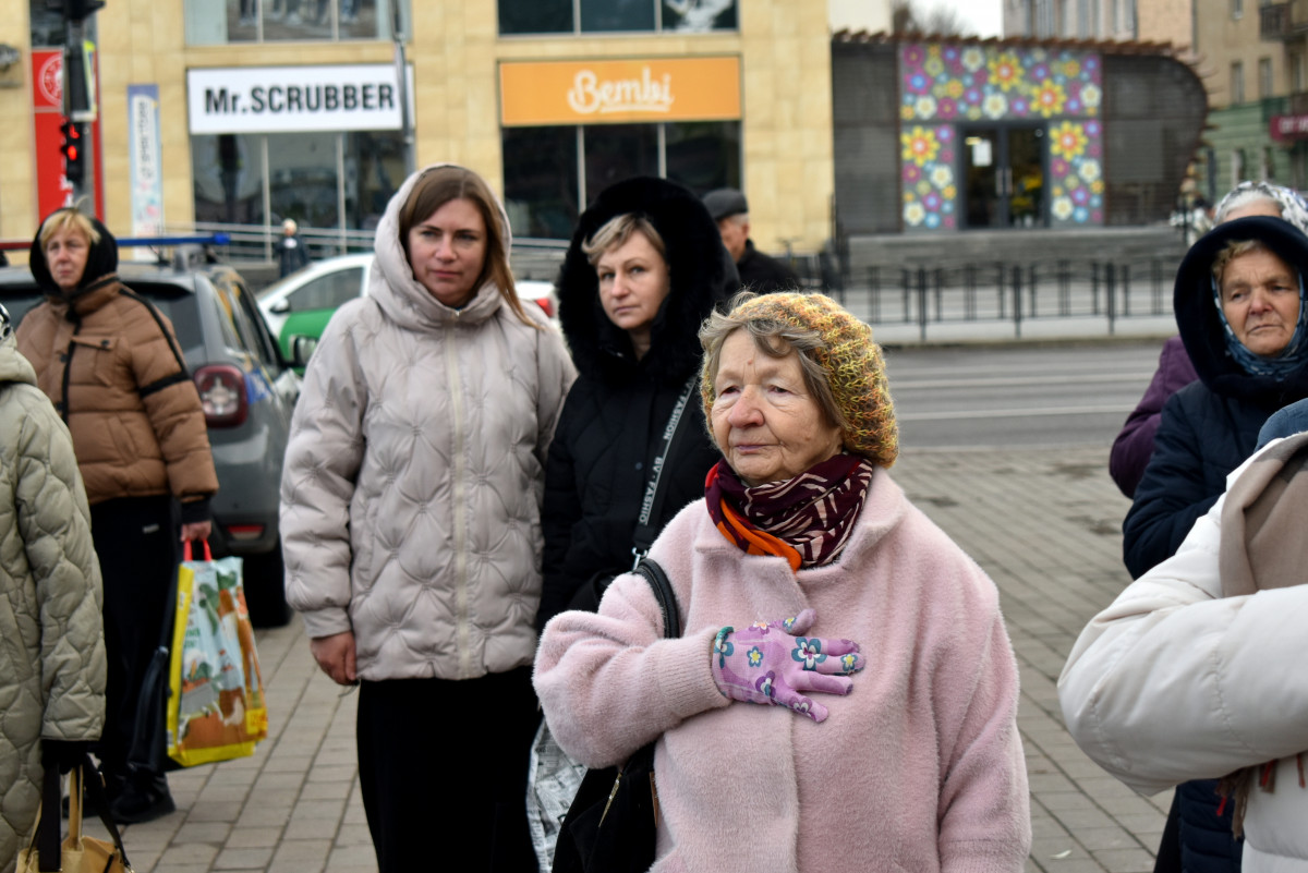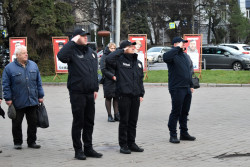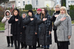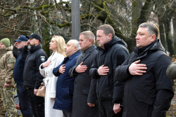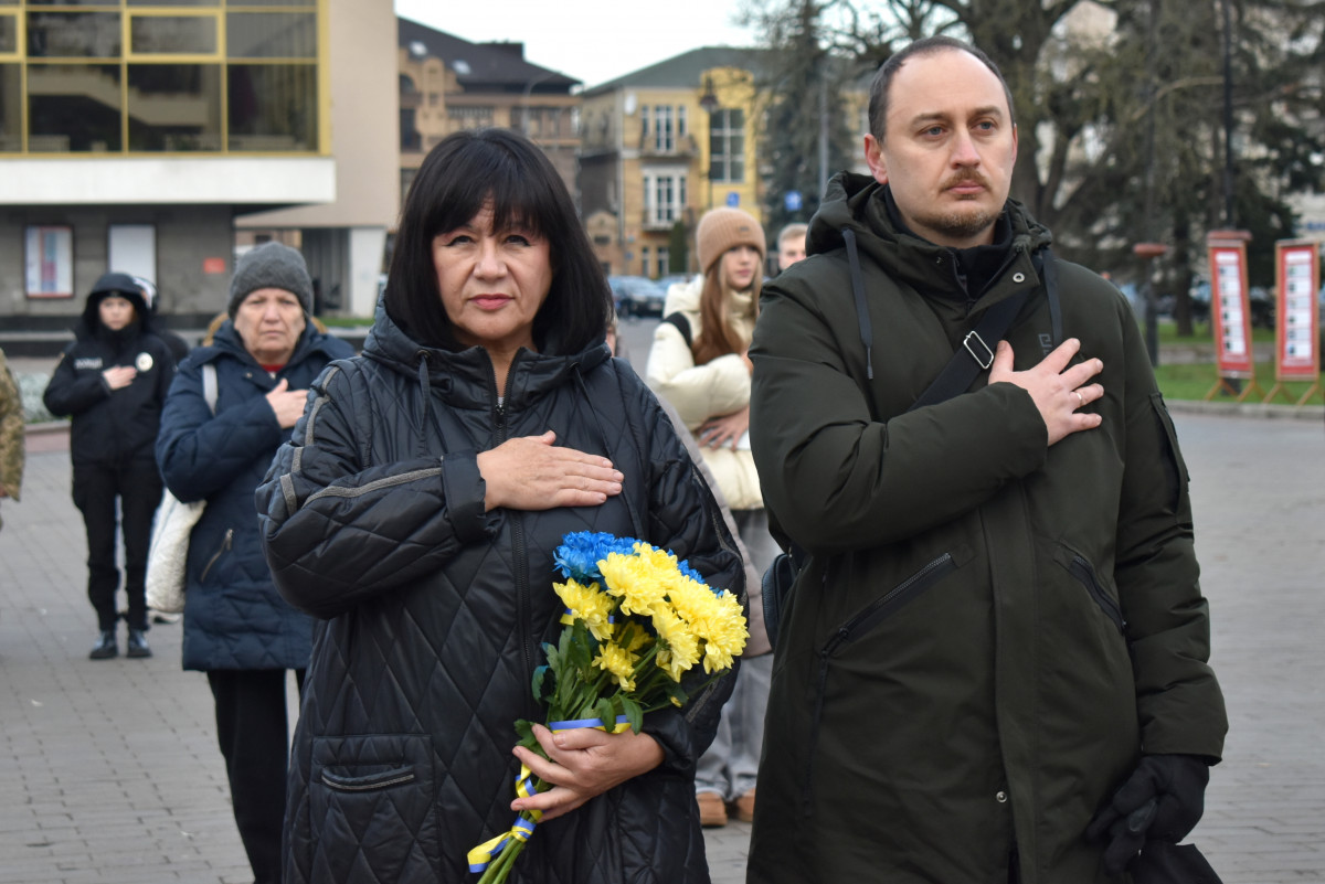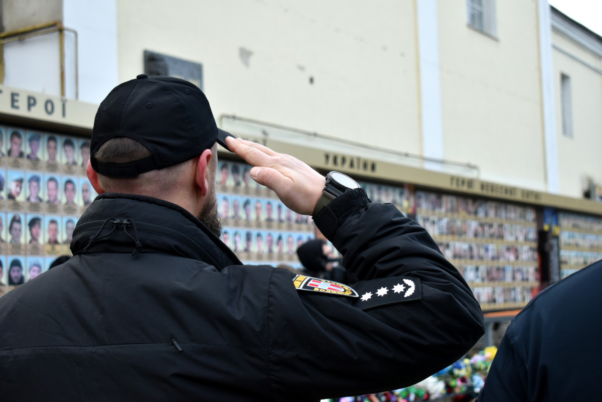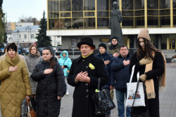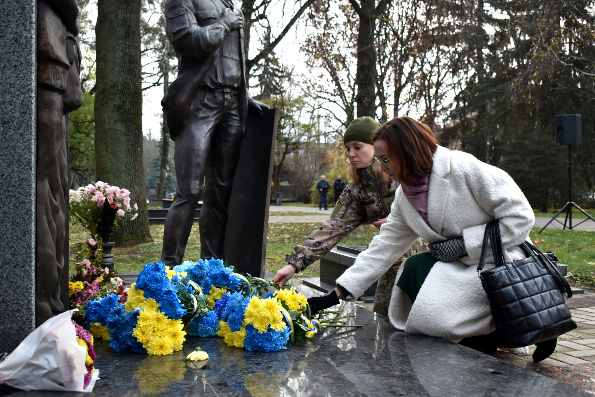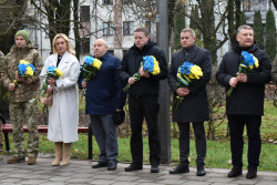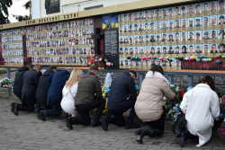 Символічні синьо-жовті квіти поклали до фотостенду Героїв Небесної Сотні волиняни, серед них начальник обласної військової адміністрації Іван Рудницький, представники обласної та міської ради, Луцької районної адміністрації, військові і правоохоронці, громадські активісти.
