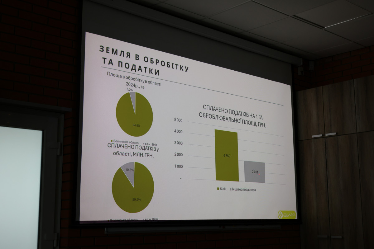 Працюють у Волинській, Рівненській, Тернопільській та Львівській областях. Загалом оперують 52 тис. га землі, з яких близько 30 тис. га – волинські землі. За словами Євгена Дудки, це лише 5,2 % від усієї землі в області. Середнє податкове навантаження на один гектар землі по підприємству становить 4600 грн. Тут варто зазначити, що в залежності від якості землі ціни на землю в тергромадах області різняться. Водночас, частка , яку сплатила компанії ТМ «Вілія» усього сплаченого на Волині податку на землю, становить 10,8 %.