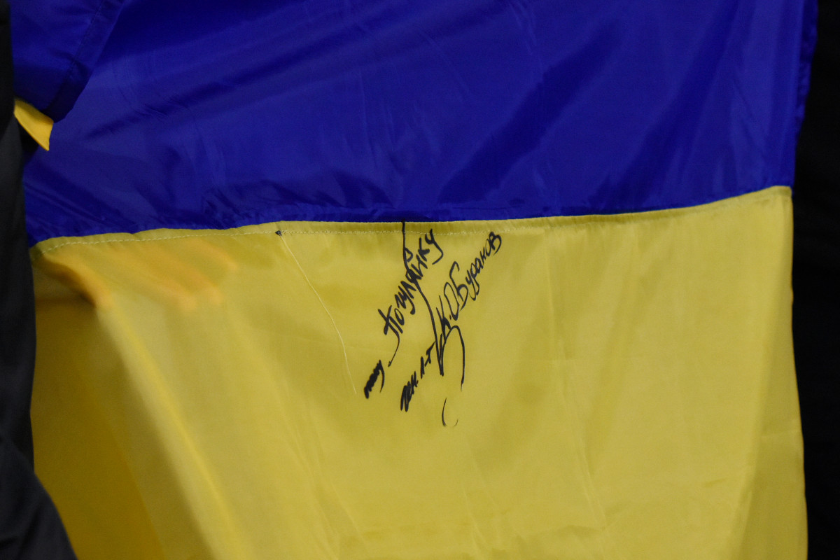 Також Юрій Погуляйко отримав від волонтерів шеврон та український стяг з підписом начальника Головного управління розвідки Міністерства оборони України Кирила Буданова.