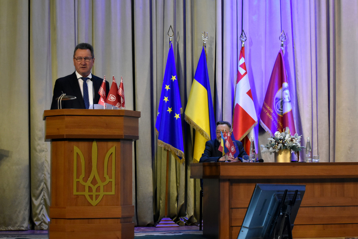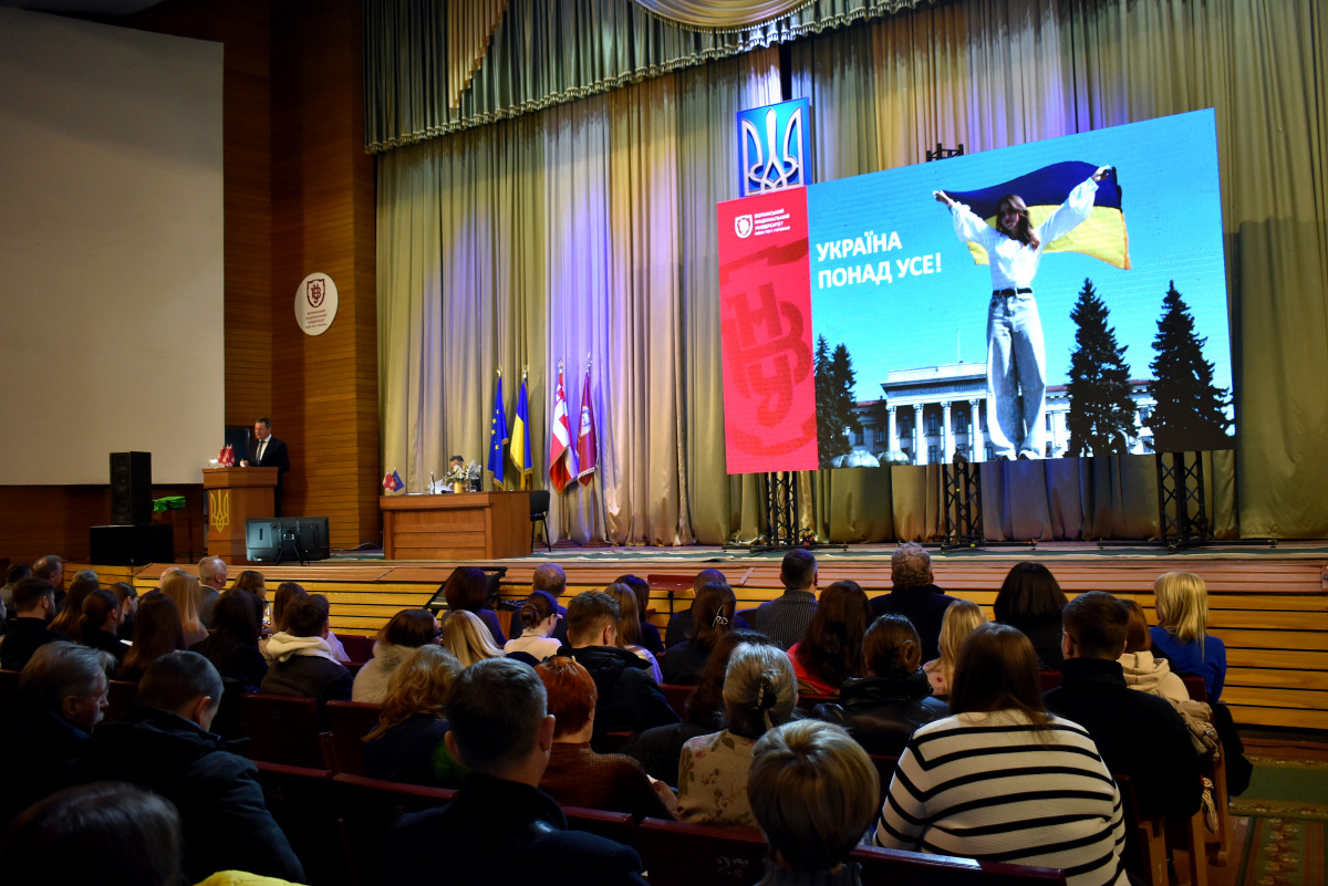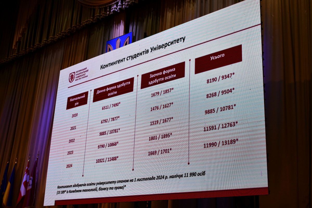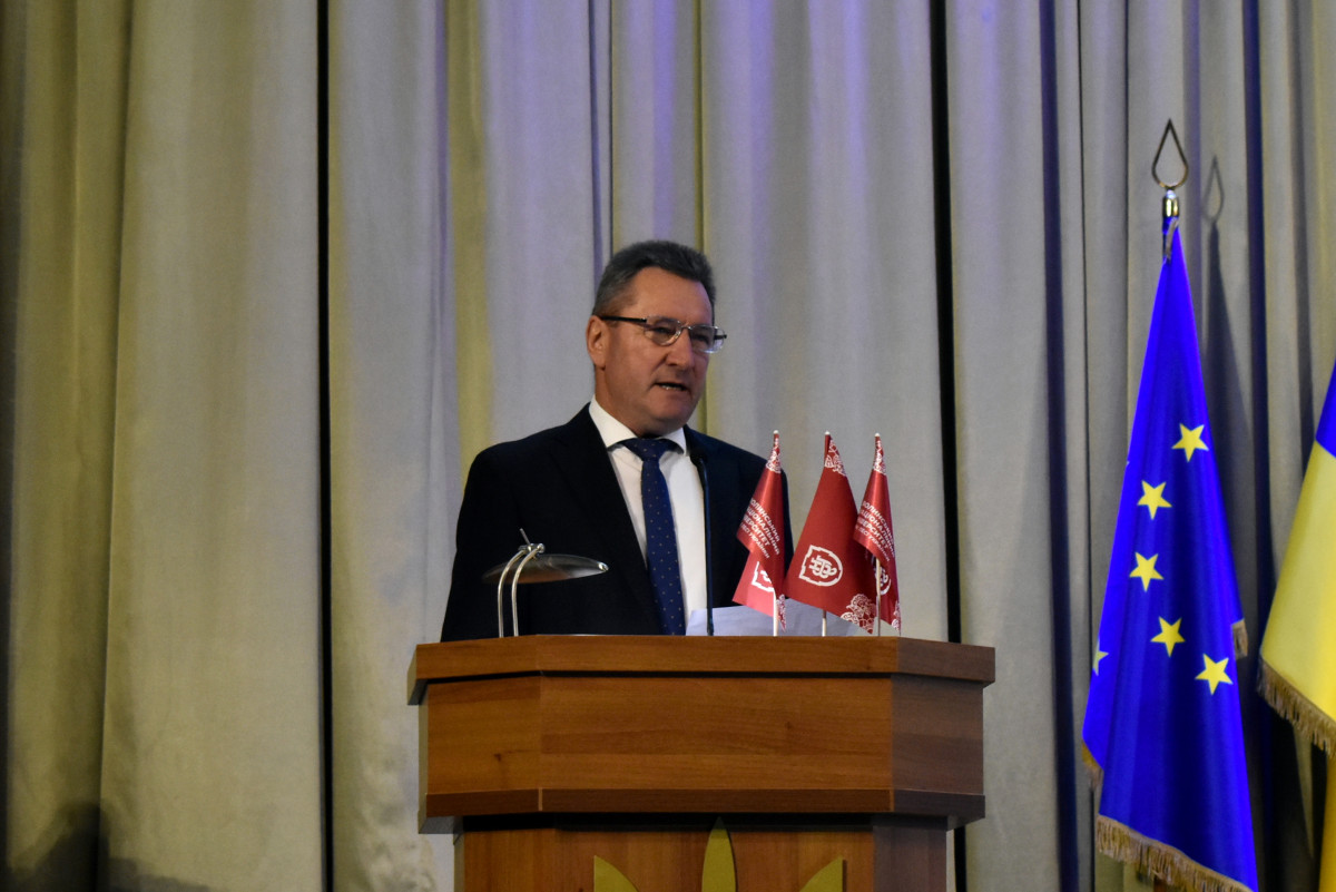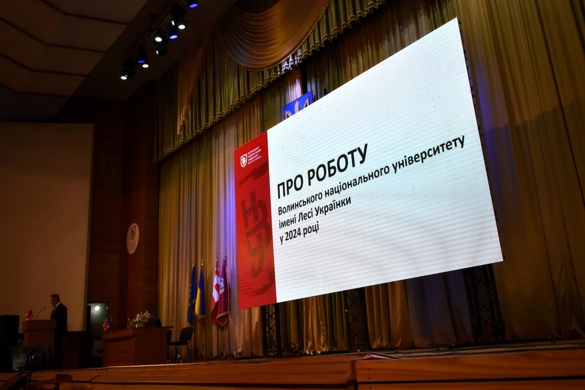 Ректор закладу Анатролій Цьось виступив із доповіддю, в якій розповів про підсумки роботи університету за поточний навчальний рік. Також озвучили основні завдання розвитку на прийдешній 2025-ий і подальшу перспективу розвитку ВНУ.