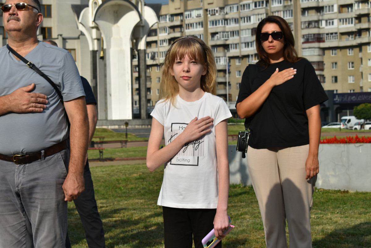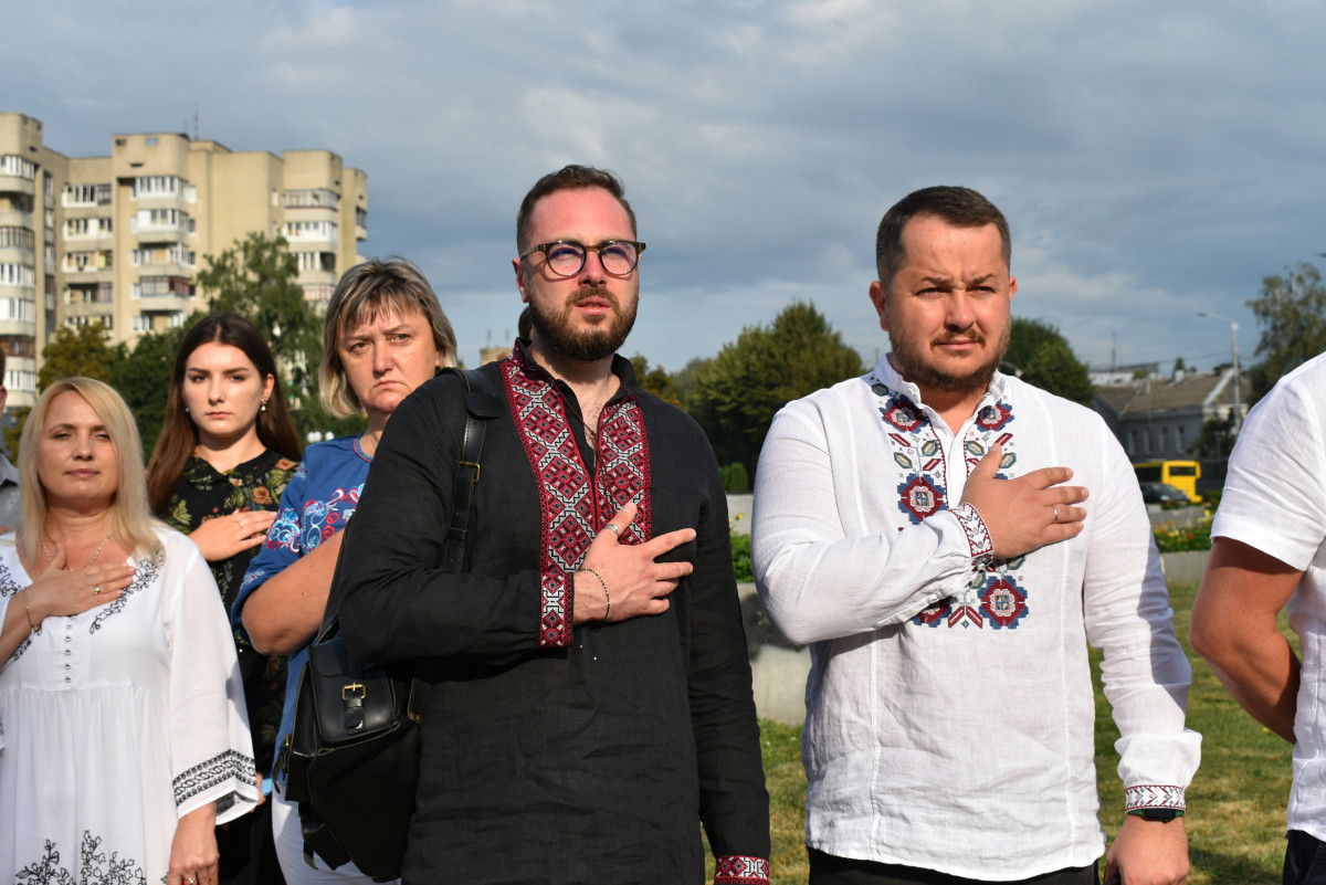 Захід розпочали загальнонаціональною хвилиною мовчання, аби вшанувати світлу пам’ять героїчного подвигу воїнів, полеглих під час виконання бойових завдань із захисту державного суверенітету та територіальної цілісності України, а також мирних громадян, які загинули унаслідок збройної агресії російської федерації проти України.