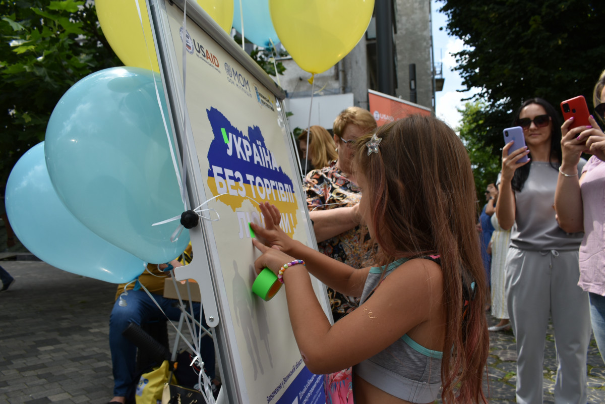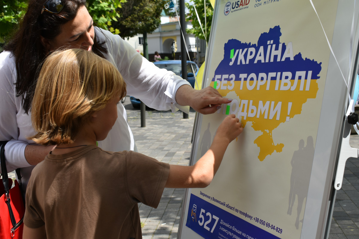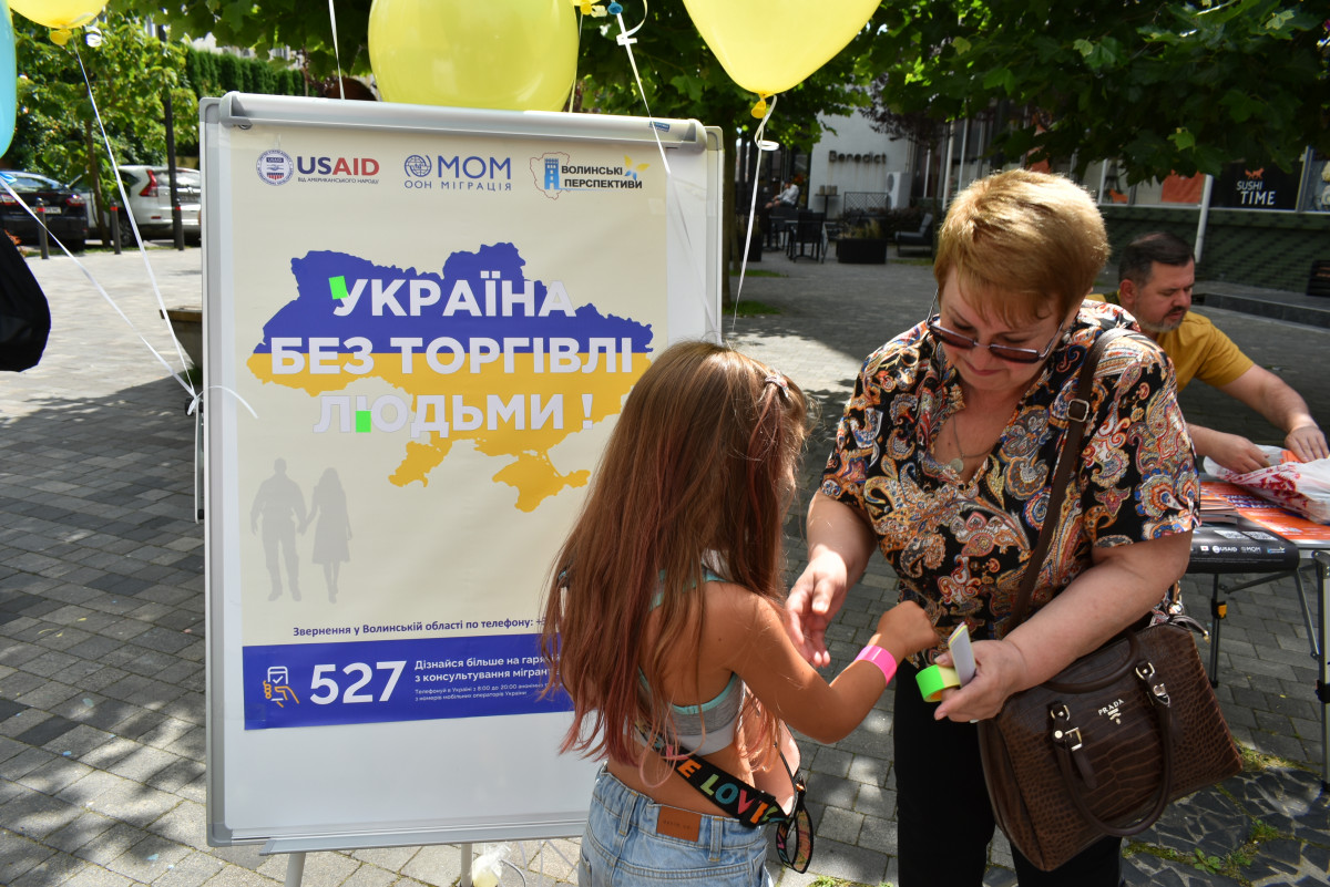 Зокрема, лучанам і гостям міста нагадали про небезпеку торгівлі людьми, а діти та дорослі долучилися до створення інсталяції «Україна без торгівлі людьми». Окрім того, організатори акції розповсюджували інформаційну продукцію щодо протидії торгівлі людьми та проводили анкетування перехожих. Поруч із тим, фахівці Волинського обласного та Луцької філії Волинського обласного центрів зайнятості ознайомили волинян із актуальними вакансіями, умовами отримання грантів та мікрогрантів, ваучера на навчання тощо.