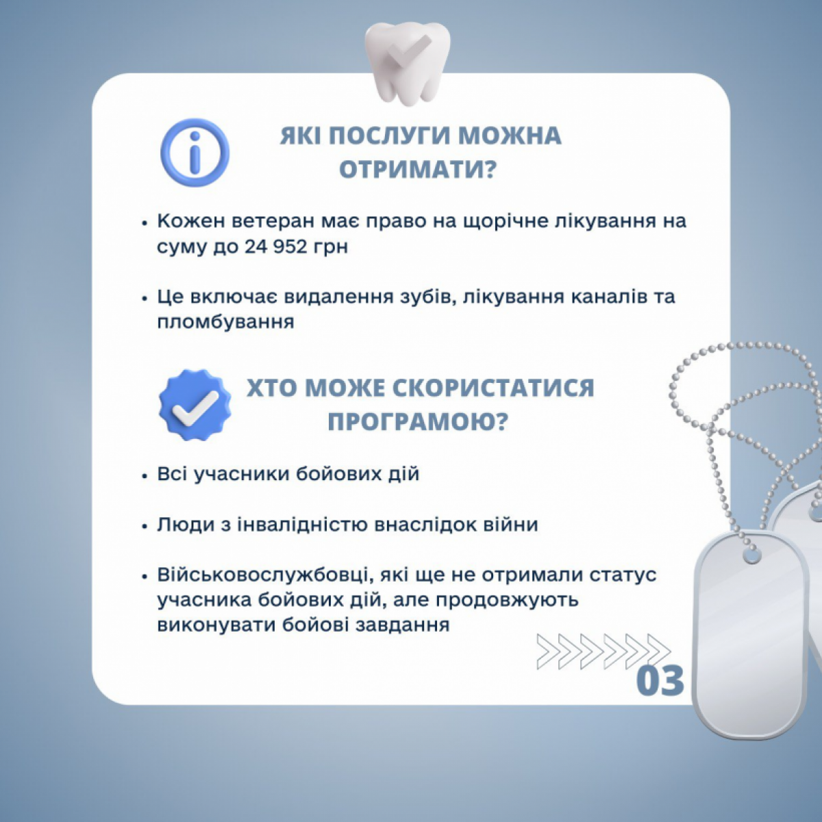 Нова державна програма: безкоштовне лікування зубів для ветеранів та військових
