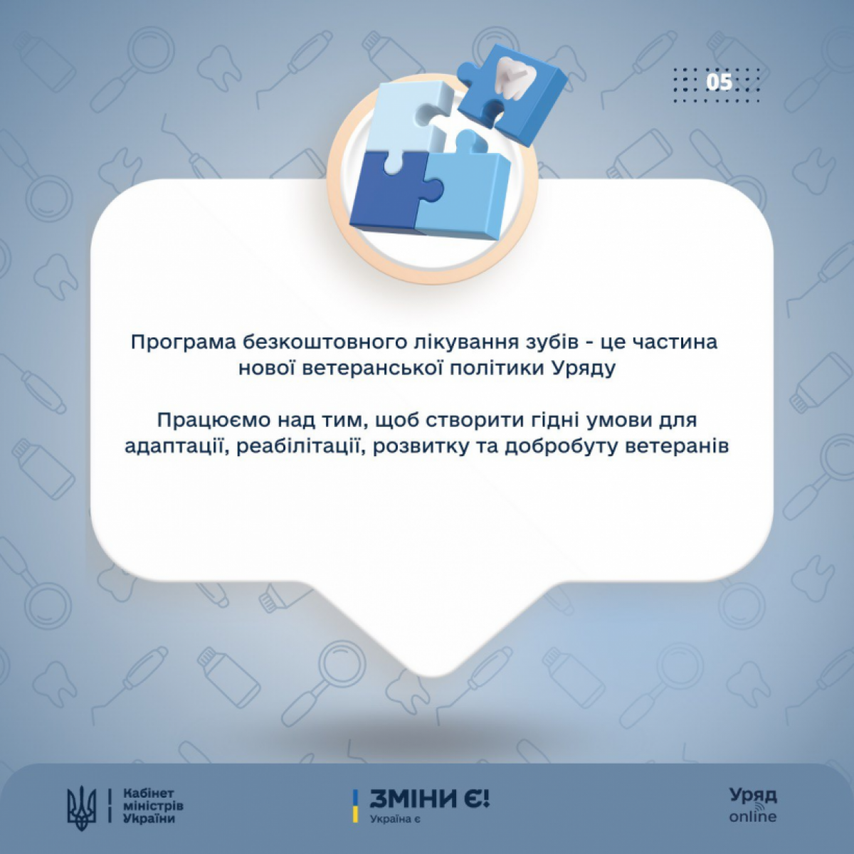 Українські ветерани та військовослужбовці можуть безоплатно лікувати зуби. Для цього Уряд в бюджеті передбачив 1 млрд гривень.