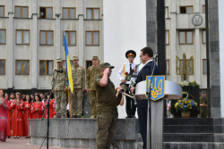 Також з нагоди свята Почесною грамотою обласної державної адміністрації сумлінну працю, високопрофесійне виконання службових обов’язків, активну громадянську позицію нагородив заступника командира частини з тилу-начальника тилу Володимира Нарижняка та вручив Подяки: