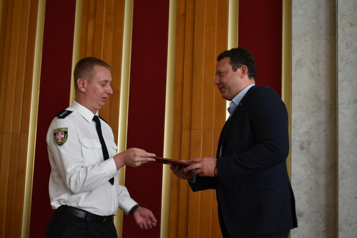 — Я вітаю вас з професійним святом. Ви впевнено та чітко виконуєте поставлені вам завдання на чолі з мудрим керівником. Я хочу подякувати вам за вашу працю. Вона дуже важлива, бо завдяки їй в домівках волинян панує безпека та затишок. Нехай і у ваших оселях завжди буде добро, радість та спокій, – промовив Олександр Олексійович.