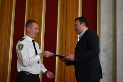 Окрім того, очільник обласної поліції зауважив, що високий рівень довіри – це заслуга всього колективу. Він подякував присутнім та побажав працівникам поліції та їхнім родинам міцного здоров`я, успіхів у роботі та віри у краще майбутнє. Зауважимо, що на заході хвилиною мовчання вшанували пам`ять тих поліцейських, що загинули під час бойових дій на Сході України.