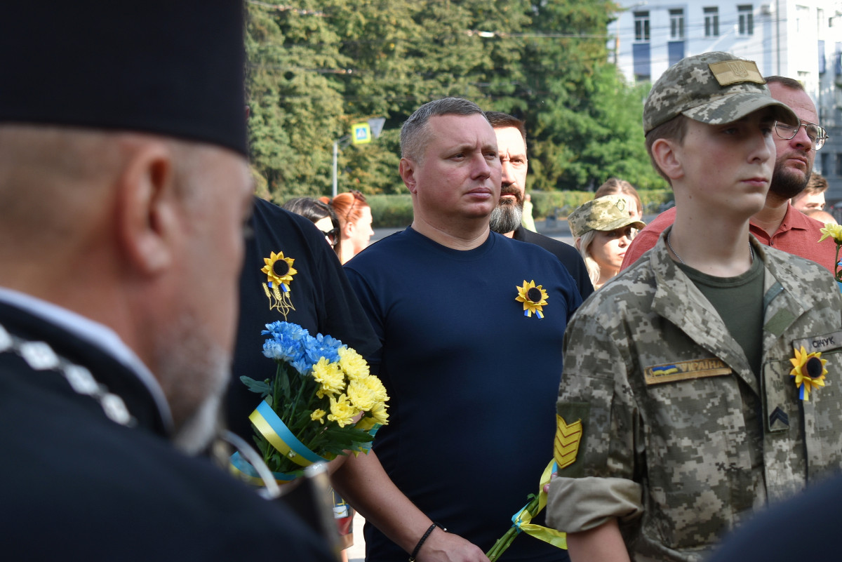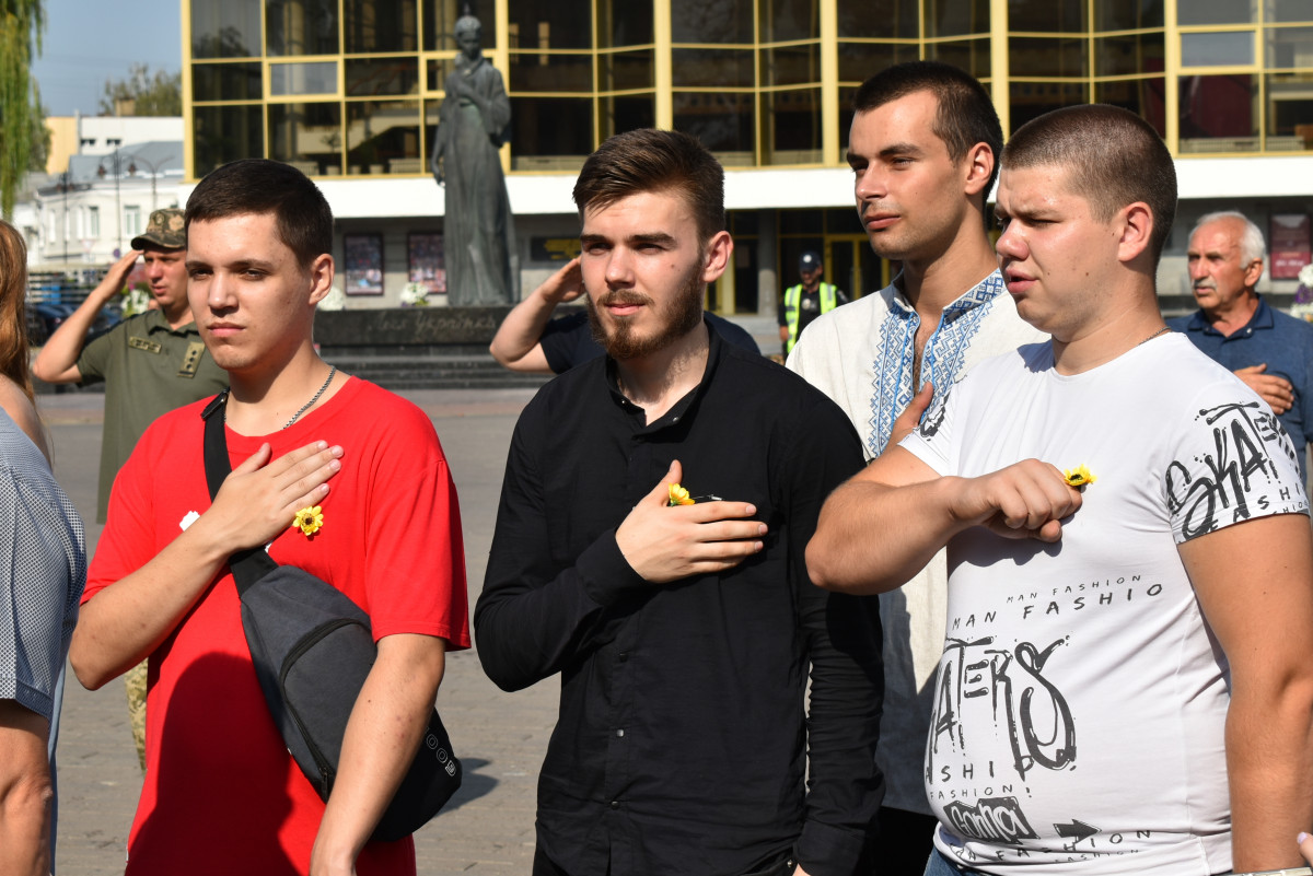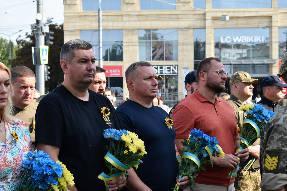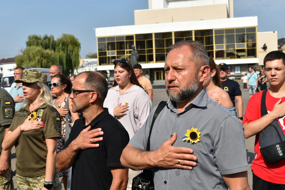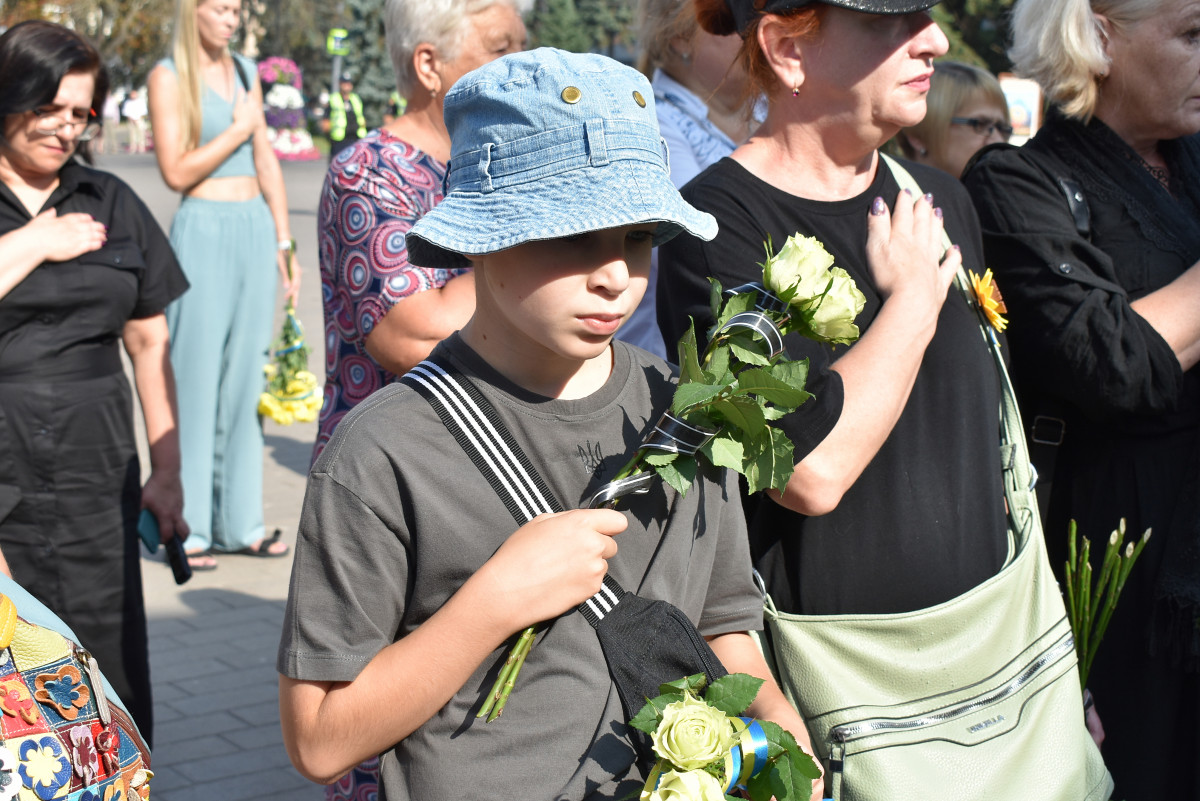 Тож хвилиною мовчання вшанували світлу памʼять героїчного подвигу воїнів, полеглих під час виконання бойових завдань, мирних громадян, які загинули унаслідок збройної агресії російської федерації проти України. Схилив голову в пошані перед загиблими захисниками й начальник обласної військової адміністрації Юрій Погуляйко.
