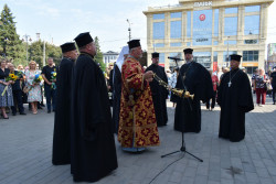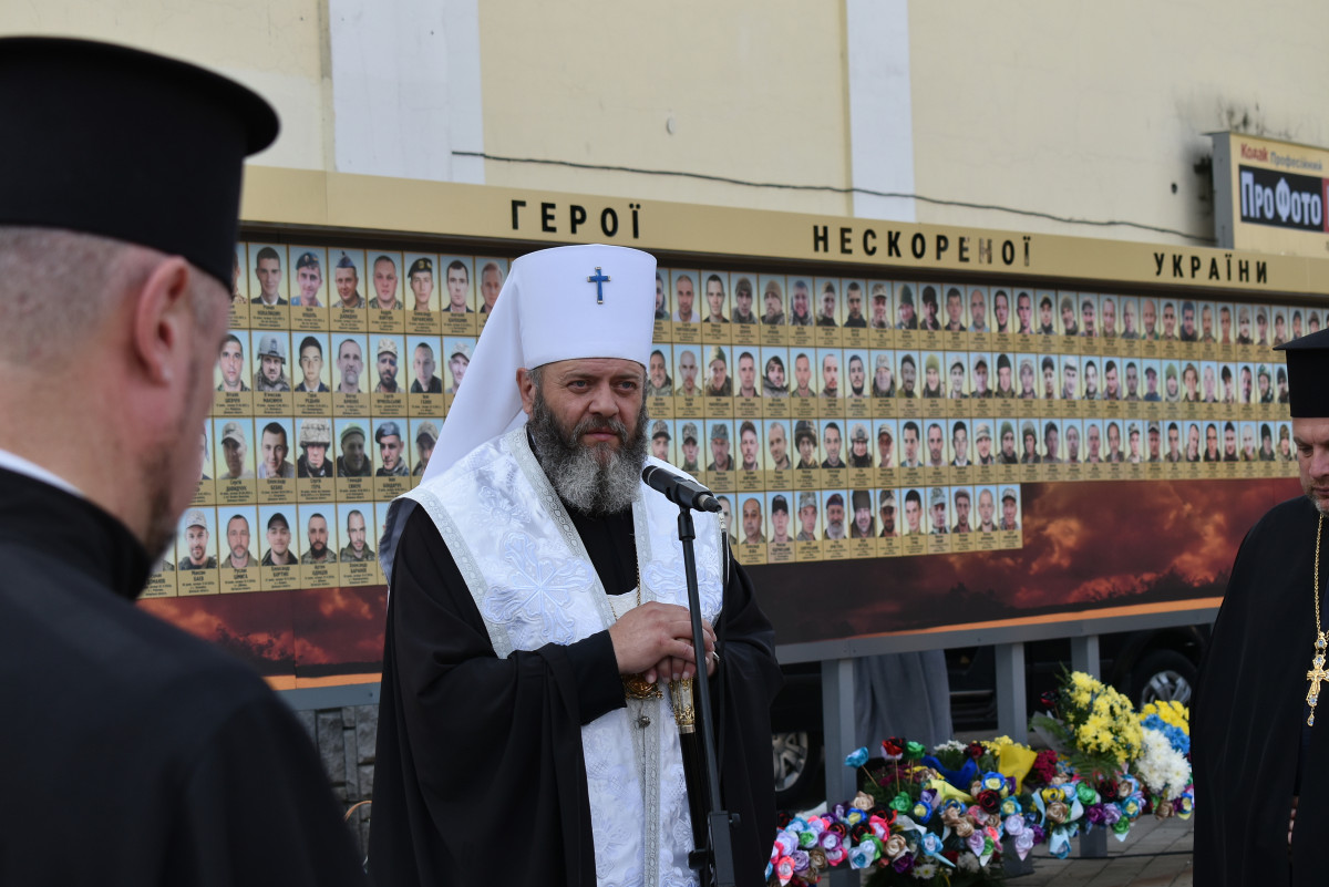 Потому представники духовенства відслужили панахиду за загиблими українськими воїнами. А присутні поклали квіти до пам’ятного фотостенду «Герої Небесної Сотні – Загинули за Єдність України», аби вшанувати світлу пам’ять Героїв новітньої доби.