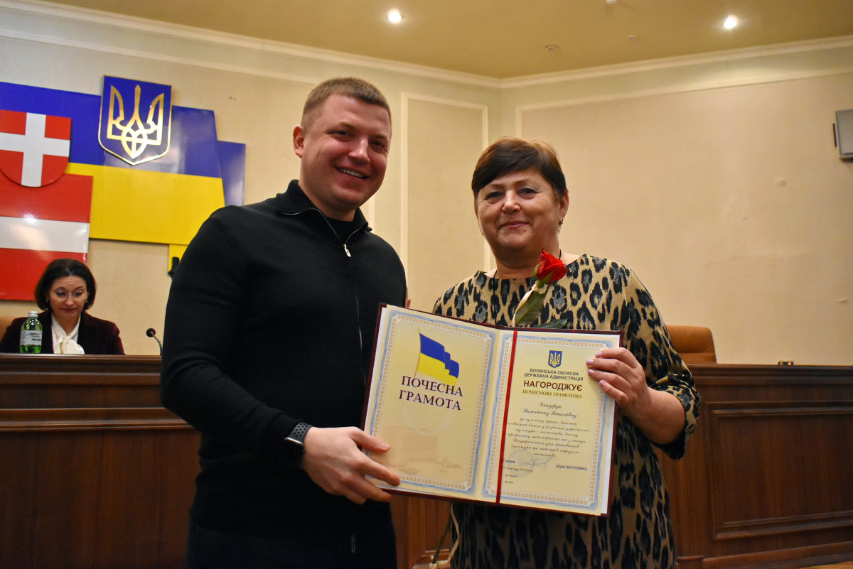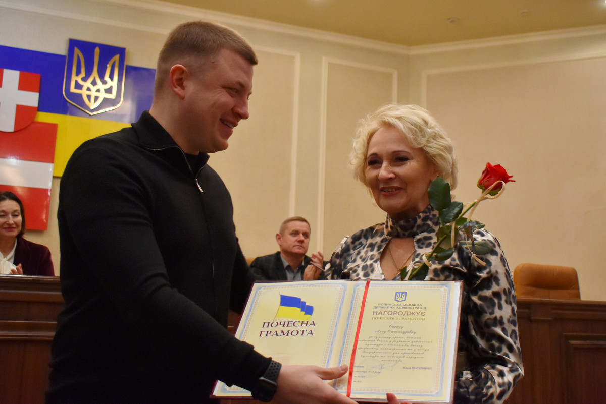 Потому волинським діячам культури вручили заслужені нагороди. Зокрема, за сумлінну працю, вагомий особистий внесок у розвиток української культури і мистецтва, високу професійну майстерність та з нагоди Всеукраїнського дня працівників культури та майстрів народного мистецтва нагороджено Почесною грамотою обласної державної адміністрації: