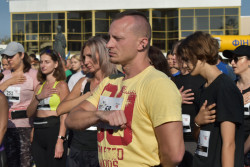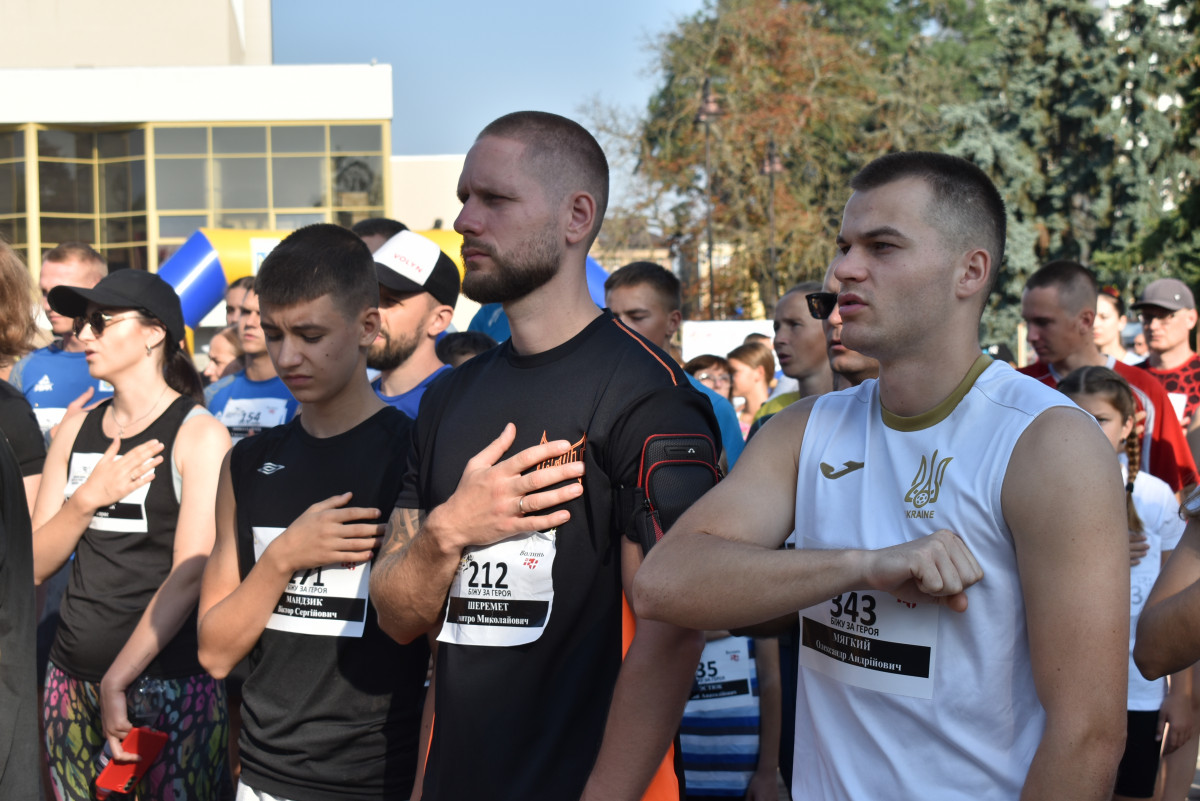 Учасники марафону вшанували пам’ять загиблих загальнонаціональною хвилиною мовчання, склали спільну молитву та виконали Державний Гімн України.
