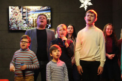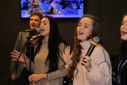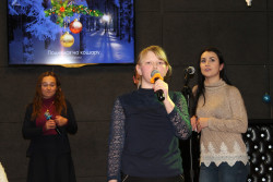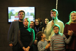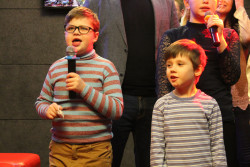 Розпочали з усім відомої з дитинства пісні «У лісі, лісу темному». А позаяк нині – різдвяна пора, далі дітки з громадських організацій «Янголята», «Кольорова капустинка» та «Повір у себе» заспівали кілька колядок. Зокрема, «Нова радість стала», «Добрий вечір тобі», «По всьому світу стала новина» та «Небо і земля нині торжествують». Не змогли стояти осторонь і присутні на заході журналісти. Відтак, усі разом вони теж виконали ряд пісень як українською, так і навіть англійською мовами.