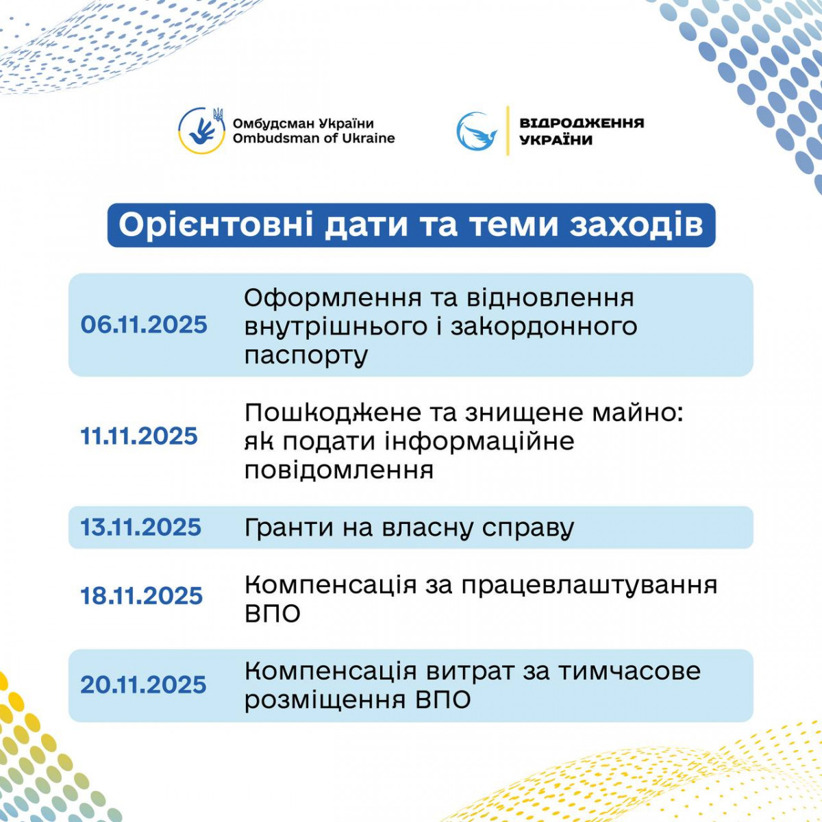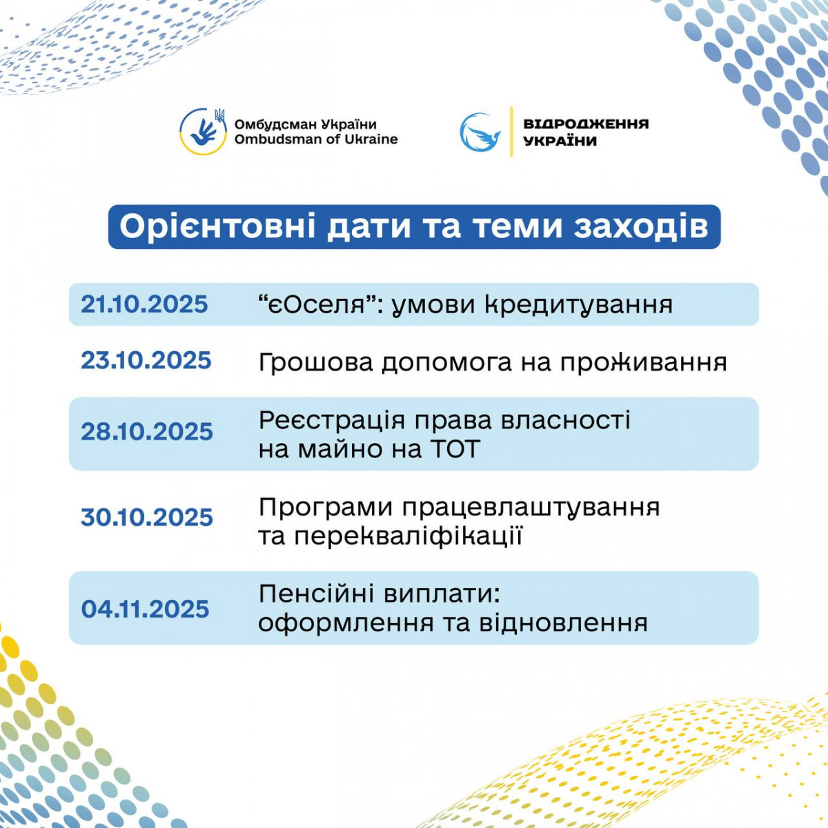 З 21 жовтня розпочинається серія правопросвітницьких онлайн-заходів, спрямованих на підвищення обізнаності внутрішньо переміщених осіб щодо можливостей реалізації своїх прав у різних сферах.