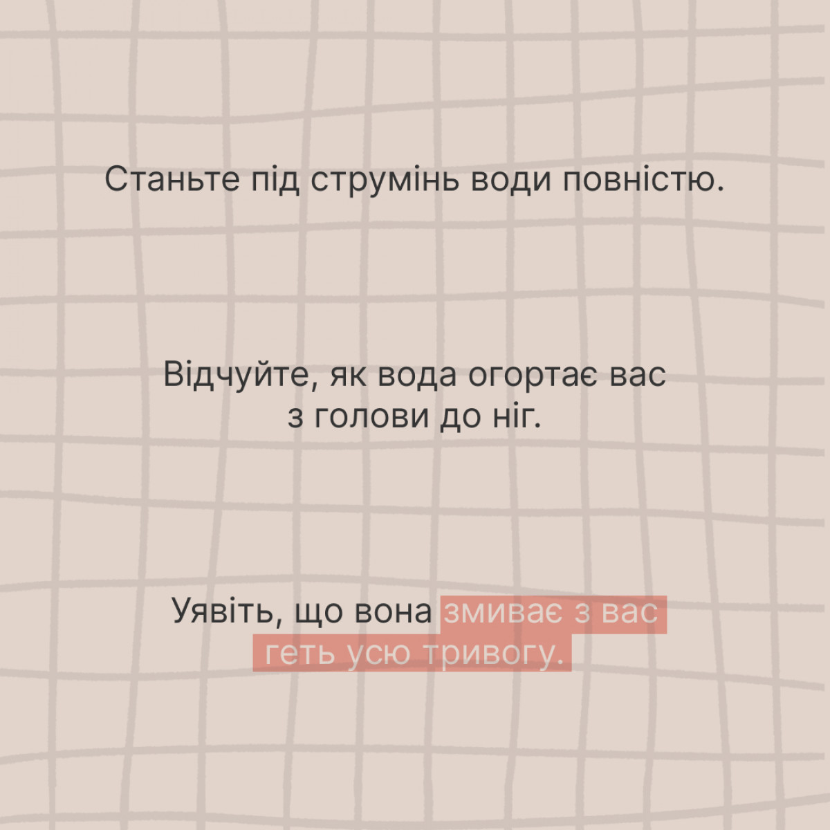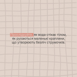 Пригадайте, ми вчилися усвідомлювати улюблену пісню, концентрувалися на ранковій каві. А тепер спробуємо тренінг усвідомленості просто в душі. Залиште поза кабінкою ваші думки — на ці 10-15 хвилин є тільки ви і лагідний струмінь води.